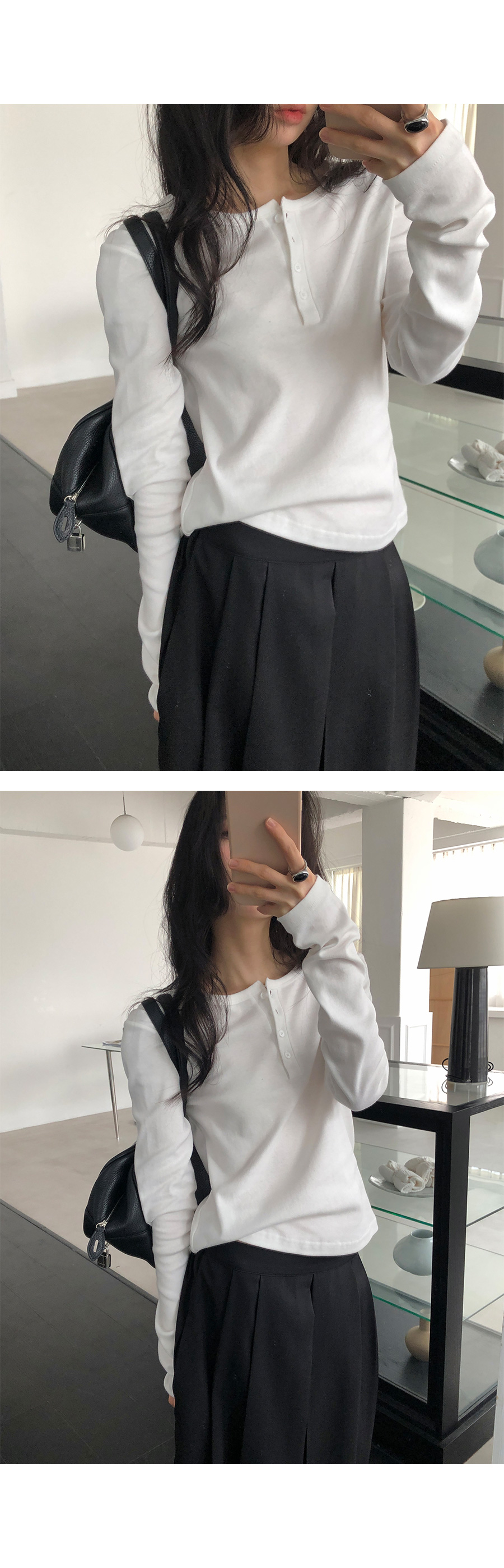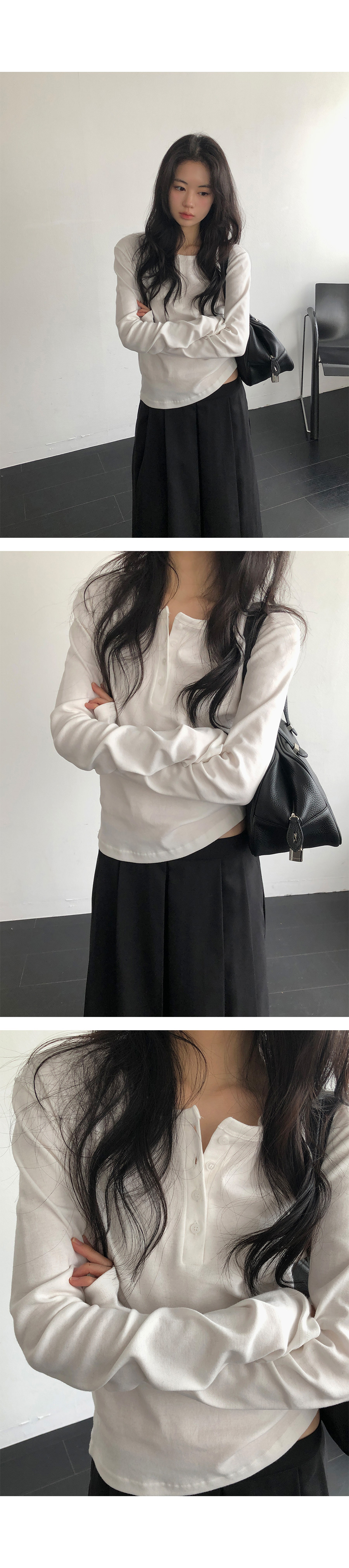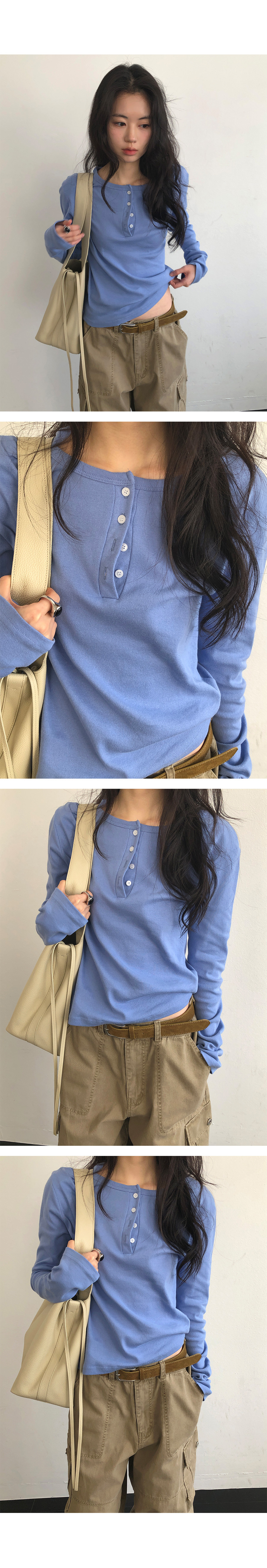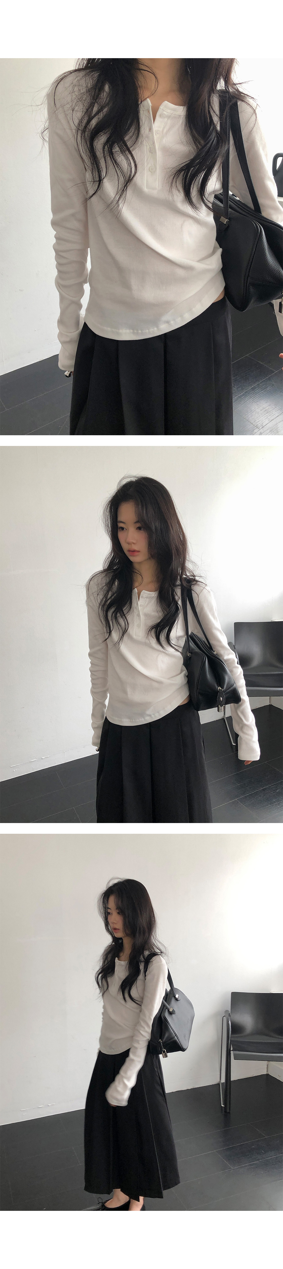 這是一款充滿現代簡約感的 亨利領(Henley Neck) 日常上衣。選用 100% 純棉材質,觸感鬆軟且具有優異的延展性,穿在身上能感受到細膩的親膚感,完全沒有束縛感。厚薄度拿捏得非常精準,冬天適合藏在大衣裡當底層,春天則非常推薦單穿或做層次疊搭。