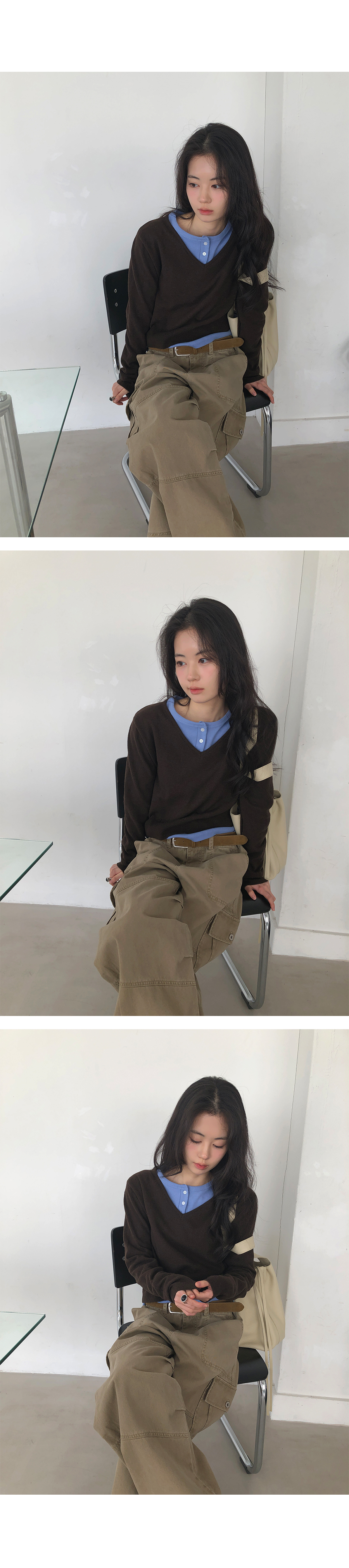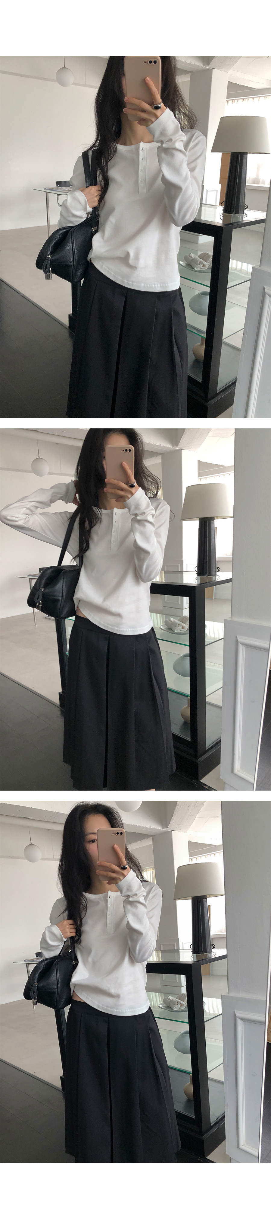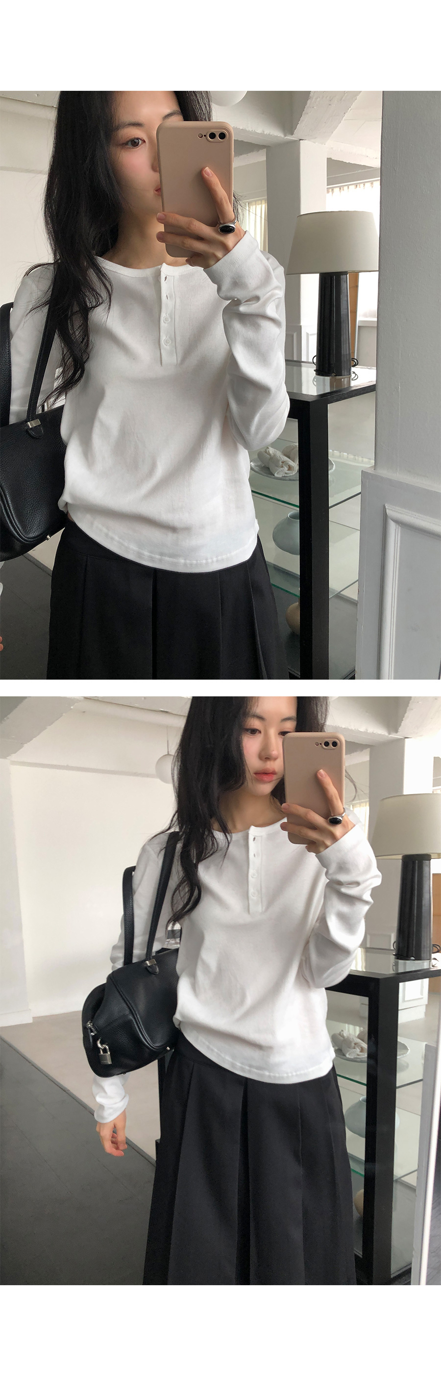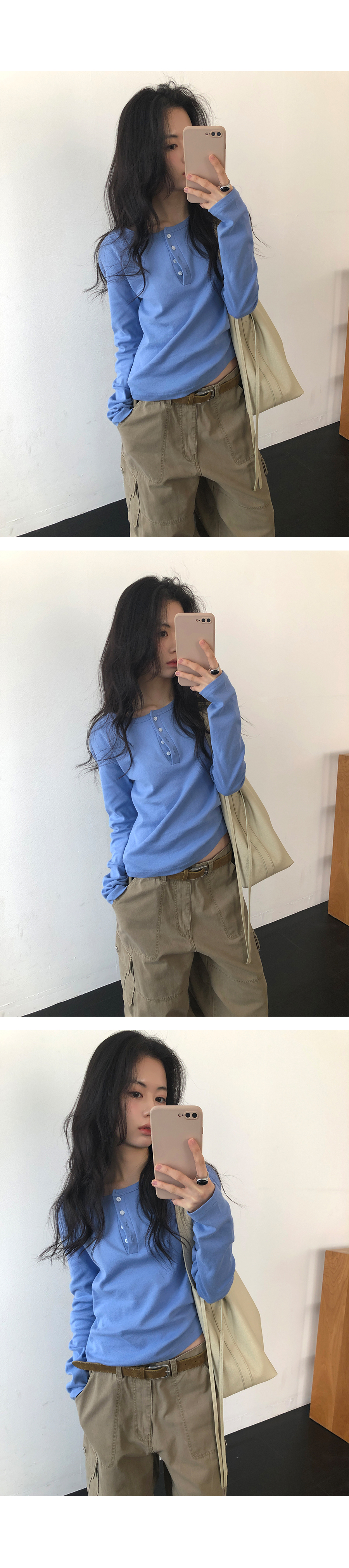 這是一款充滿現代簡約感的 亨利領(Henley Neck) 日常上衣。選用 100% 純棉材質,觸感鬆軟且具有優異的延展性,穿在身上能感受到細膩的親膚感,完全沒有束縛感。厚薄度拿捏得非常精準,冬天適合藏在大衣裡當底層,春天則非常推薦單穿或做層次疊搭。