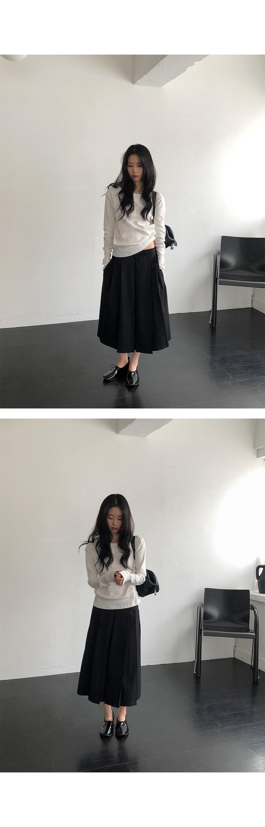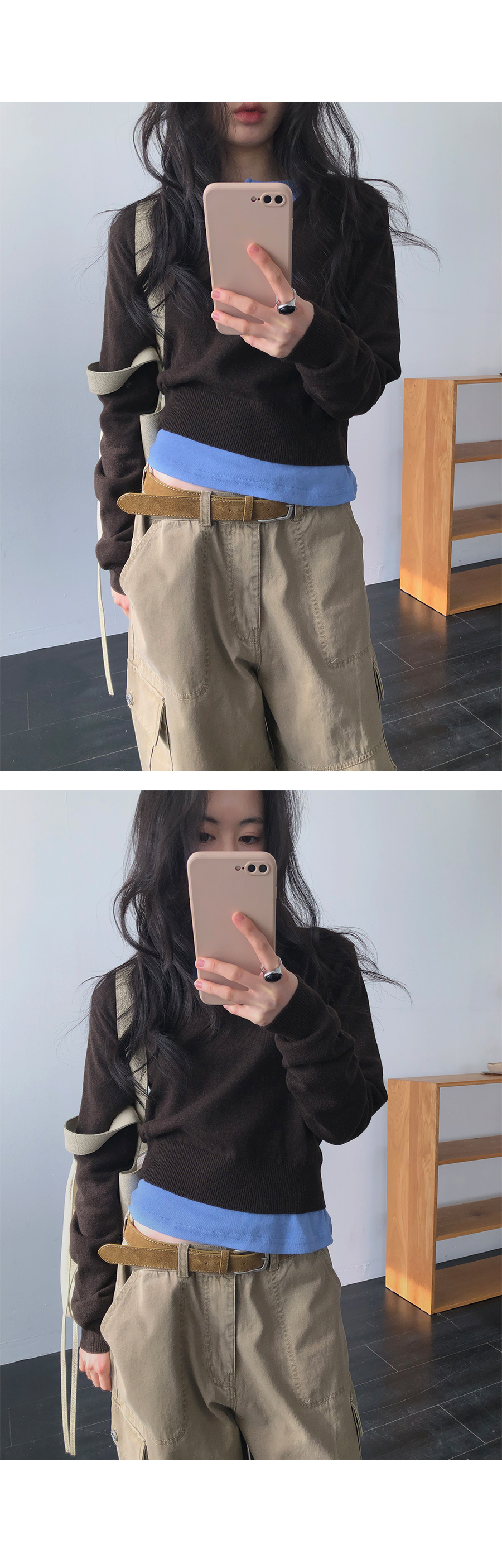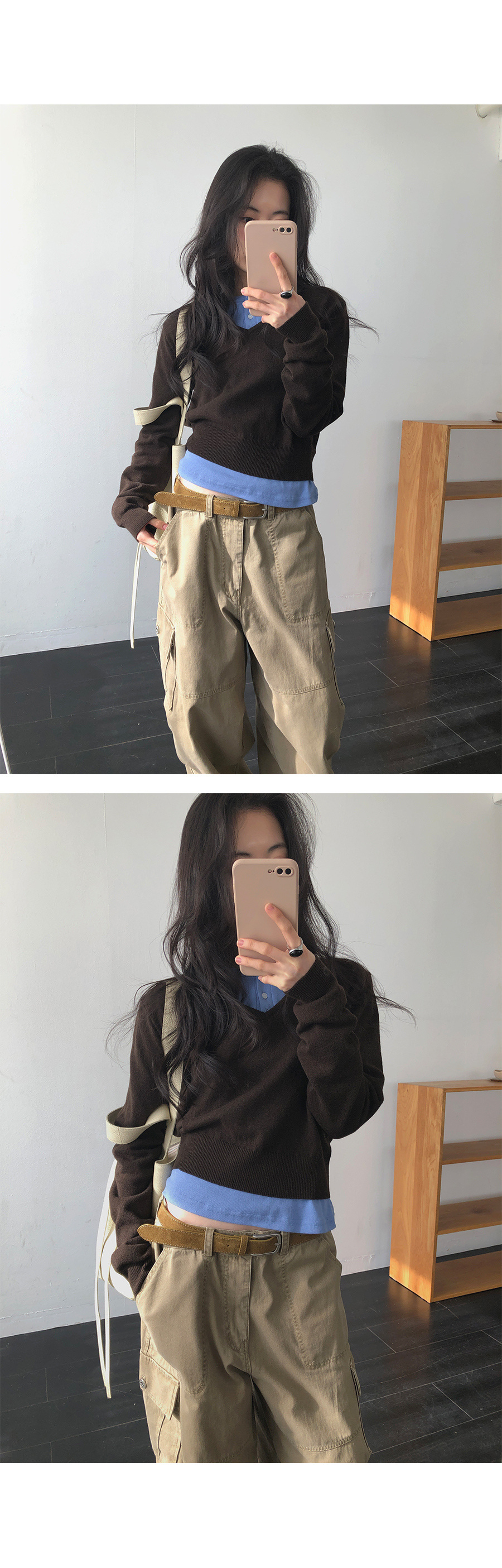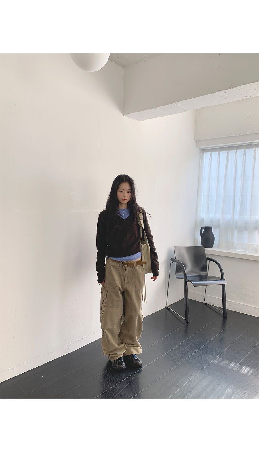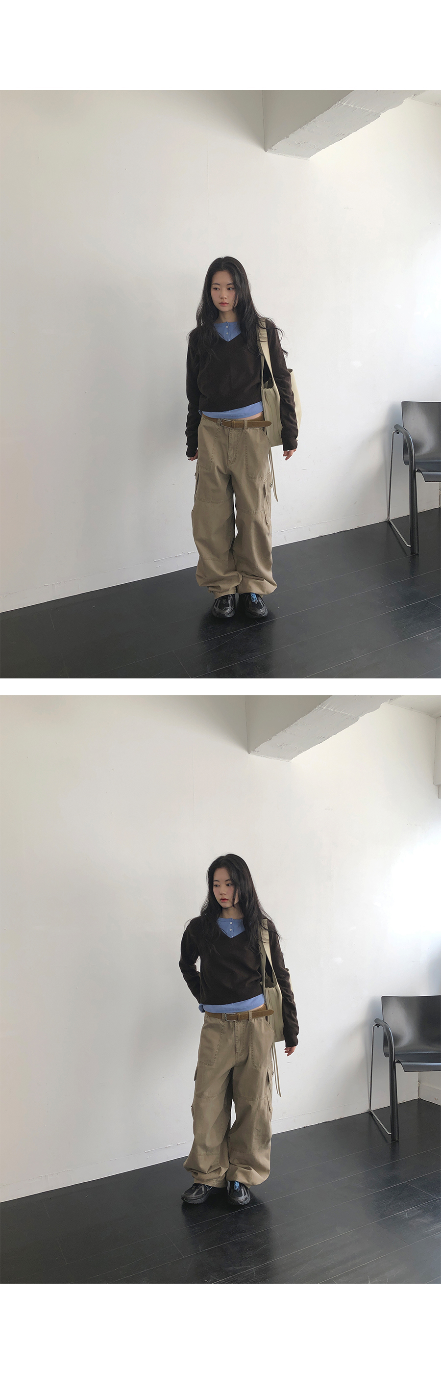版型設計上,流暢且俐落的直筒剪裁讓身形看起來更為單純端正。領口的排扣可以根據心情自由調整:全扣時顯得端莊知性,解開幾顆則多了一份隨性不羈。特別加長的袖長設計能輕輕覆蓋手背,營造出一種柔和纖細的視覺感,搭配上剛好蓋過骨盆的長度,不管是紮進高腰褲或是自然垂落,都能輕易與針織衫、開襟外套疊穿出多變的風格。