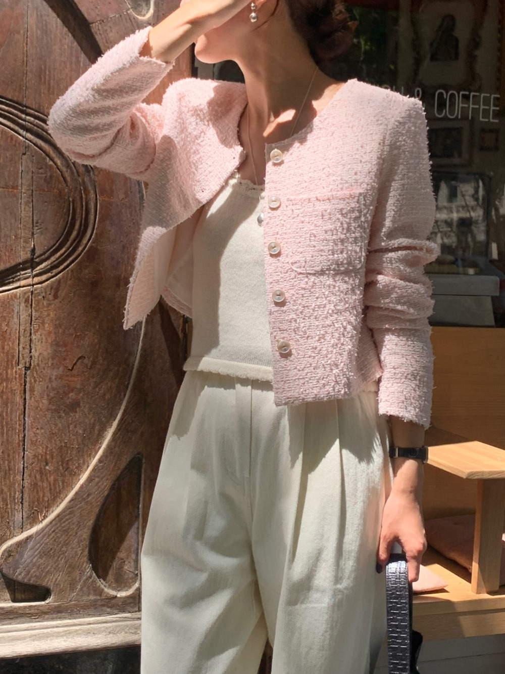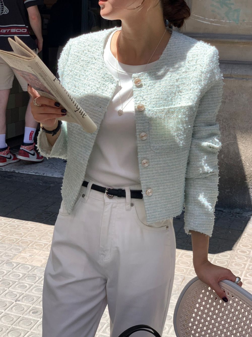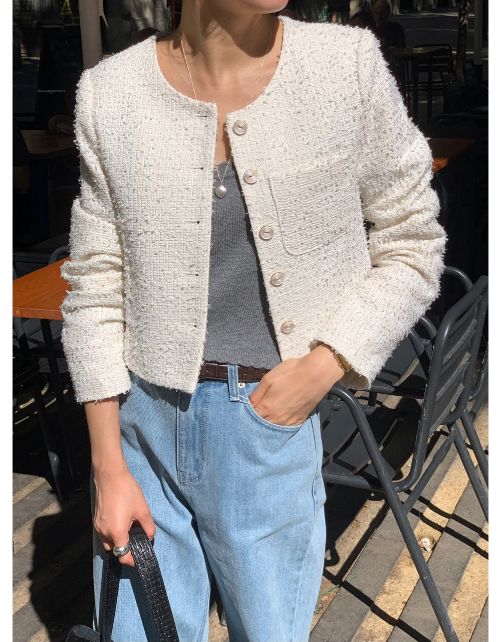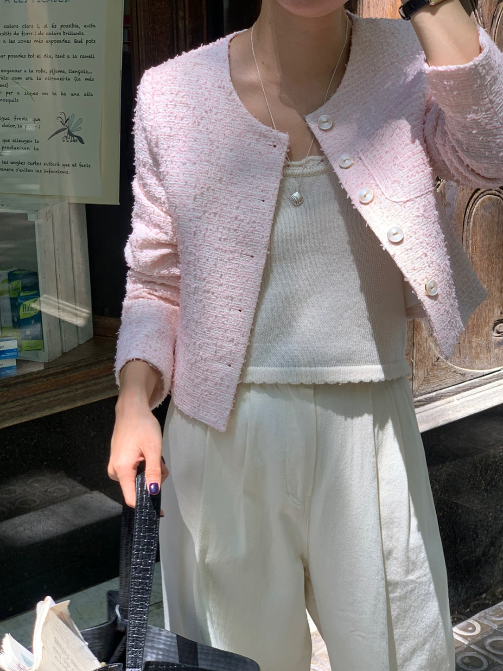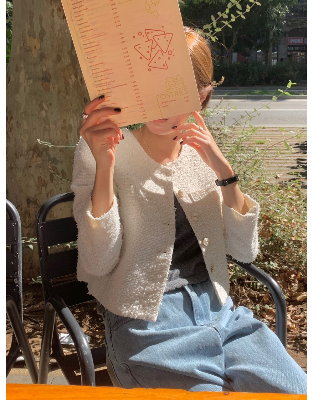 韓貨 東大門代購清倉浪漫粗花呢短版外套