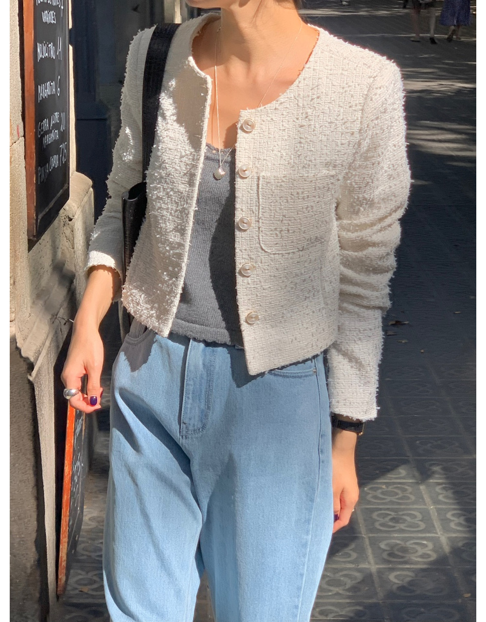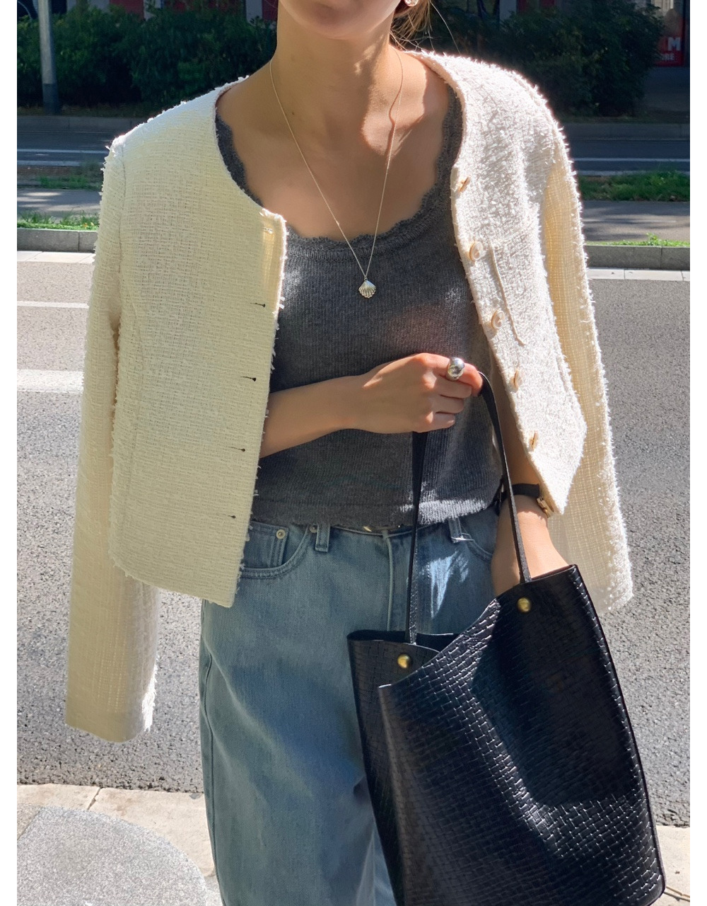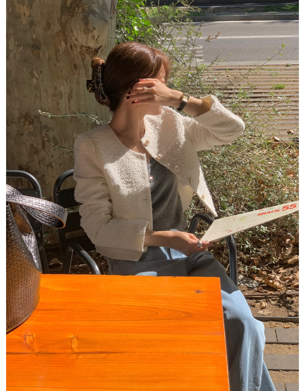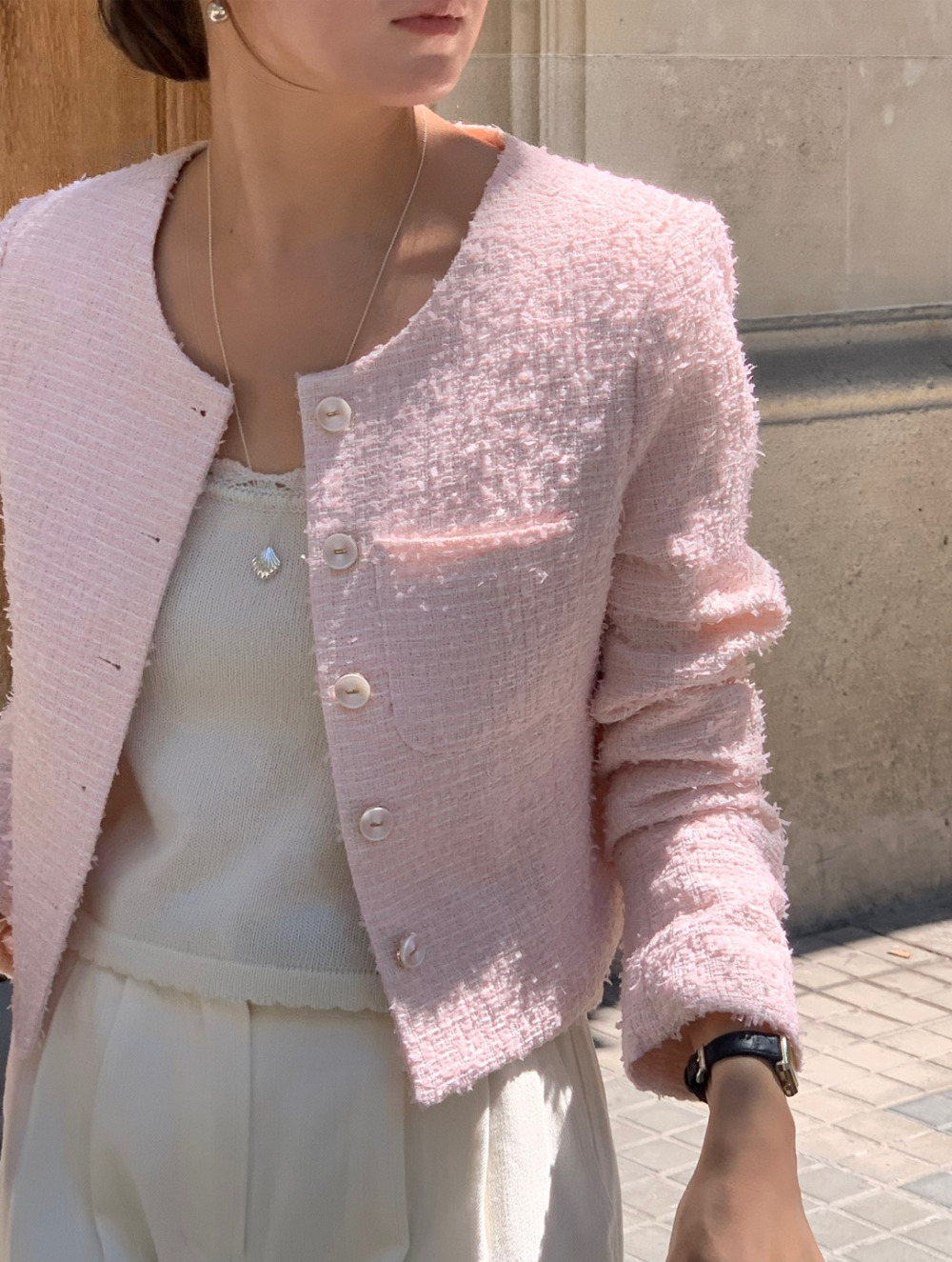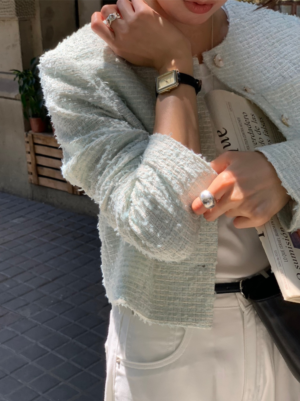 韓貨 東大門代購清倉浪漫粗花呢短版外套