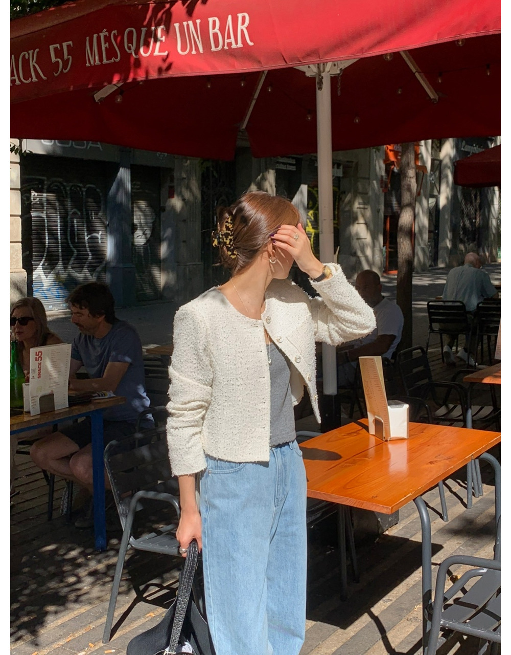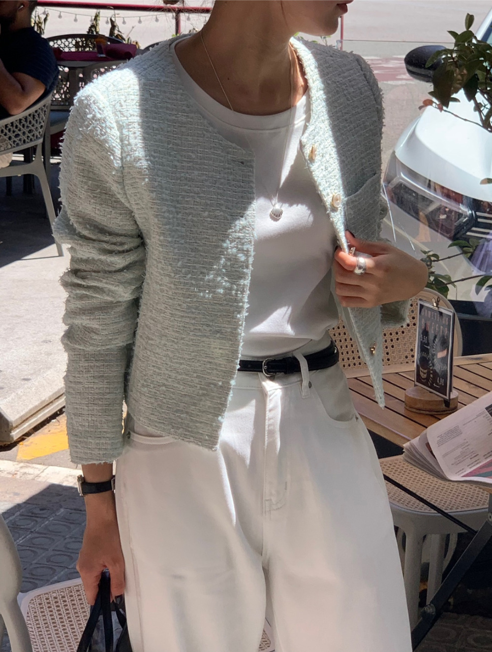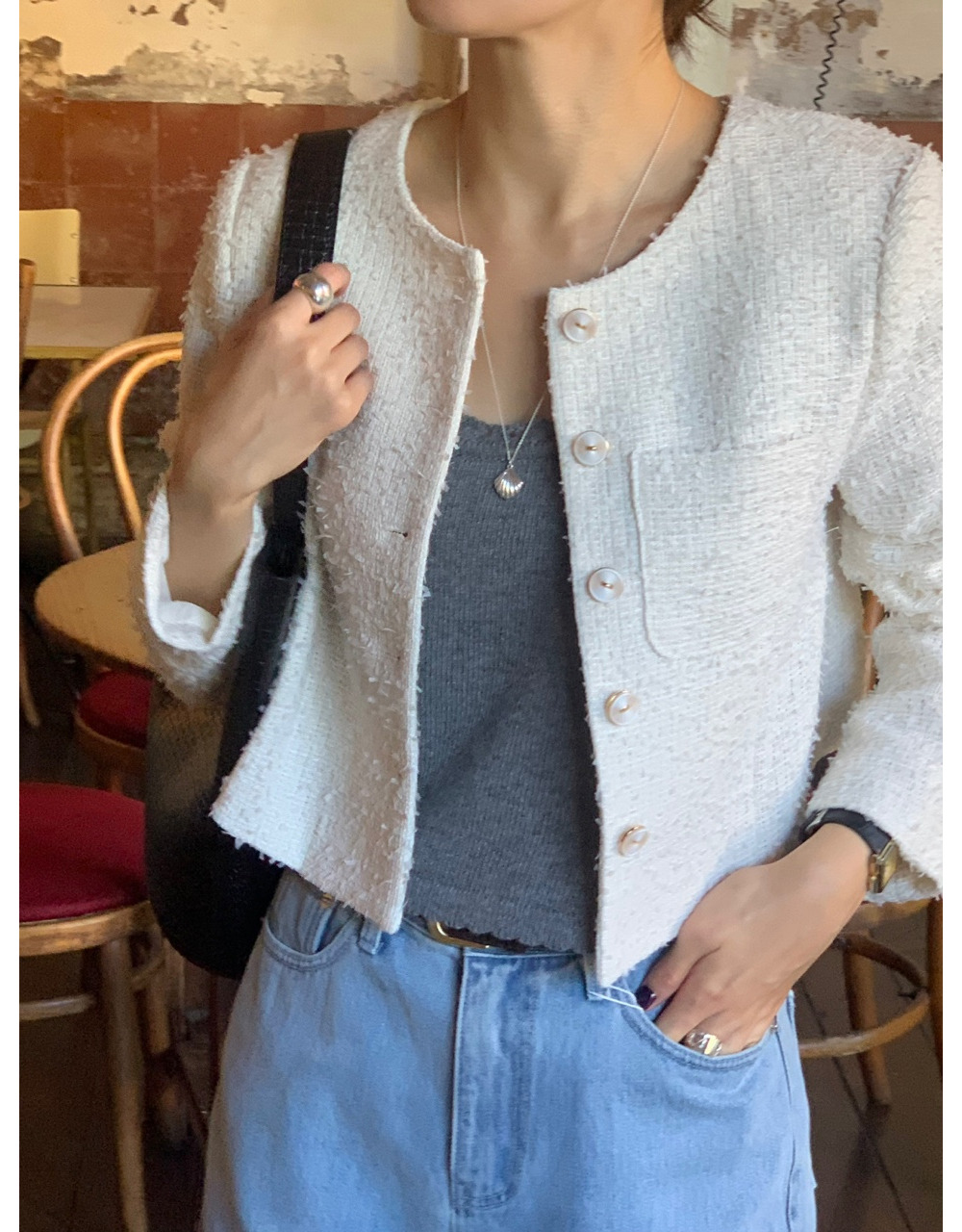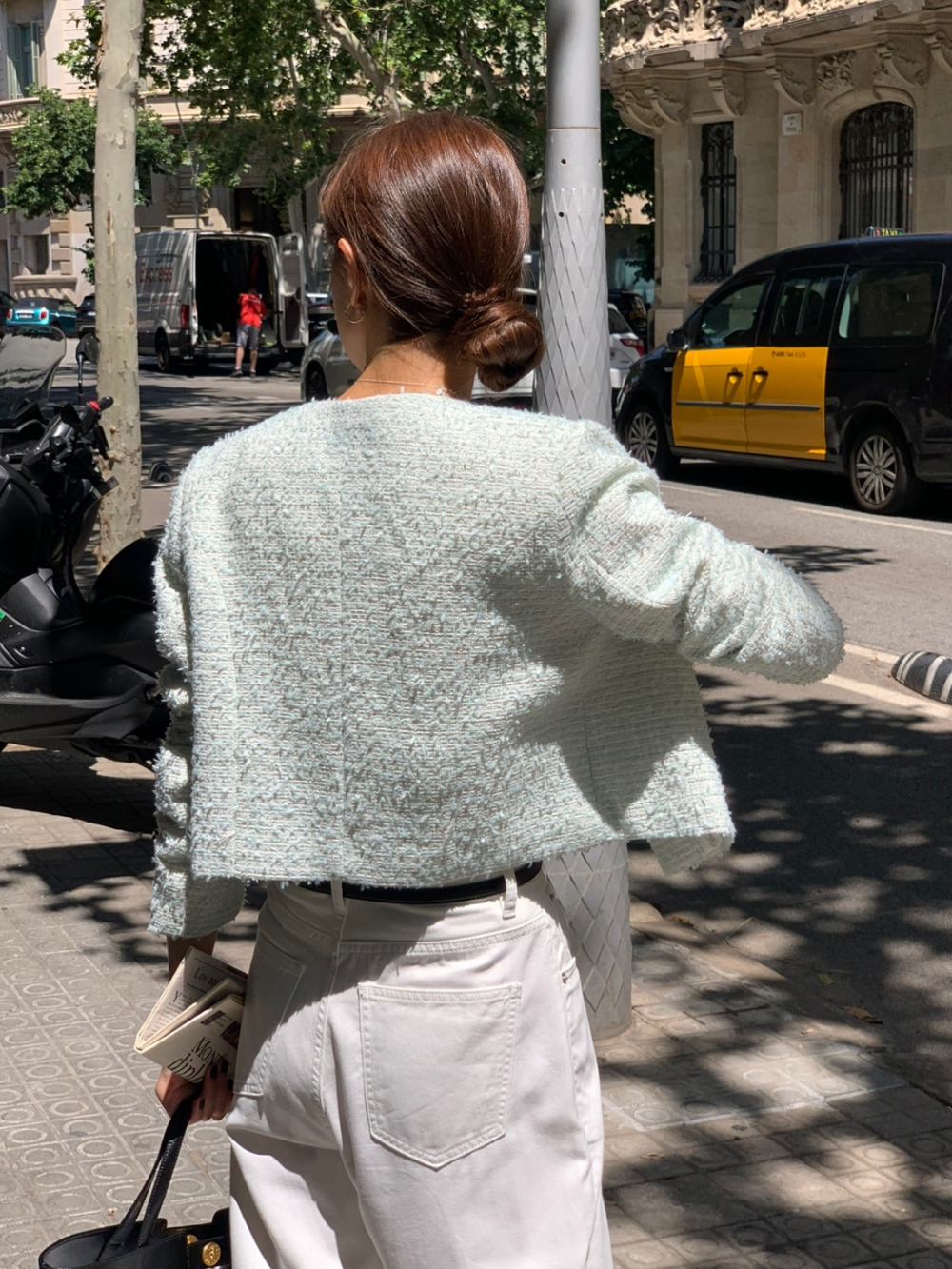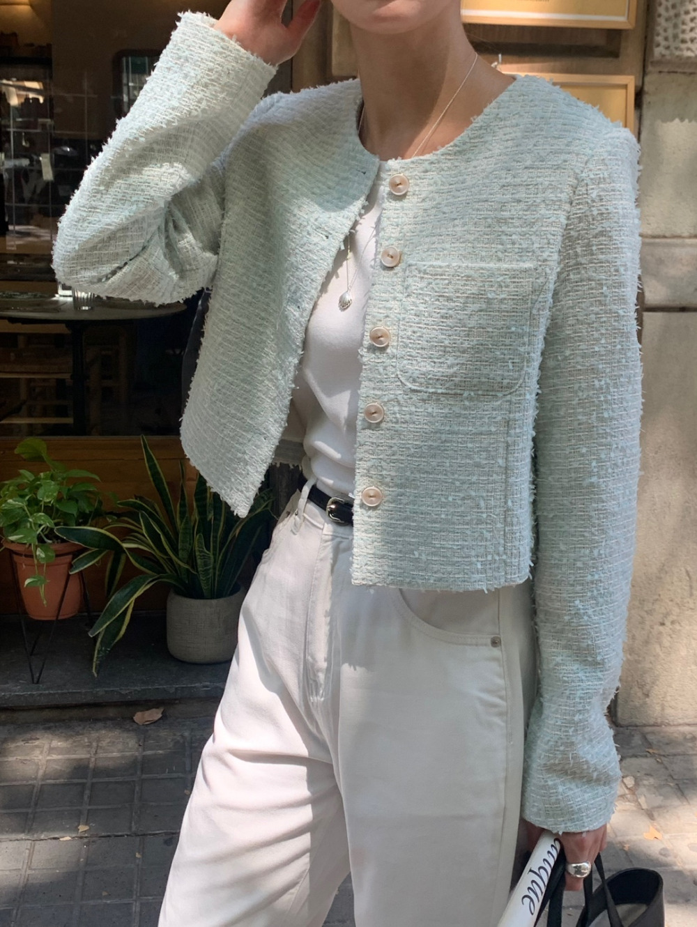 韓貨 東大門代購清倉浪漫粗花呢短版外套