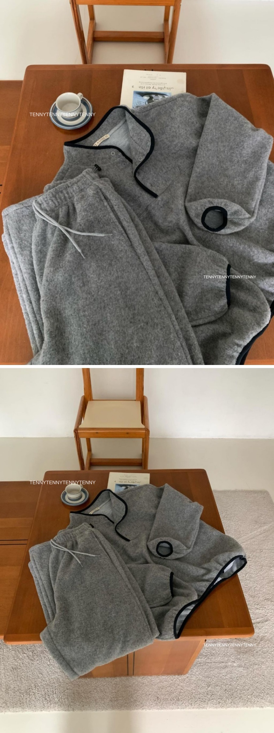 韓貨 東大門代購damber羊毛混紡保暖刷毛外套+長褲 單拍(混花灰/深炭灰)