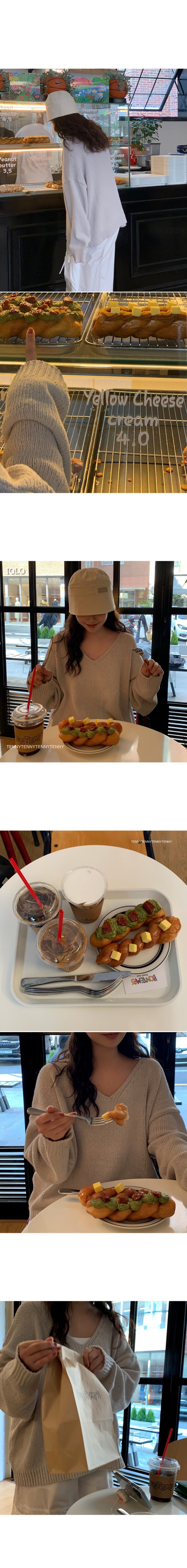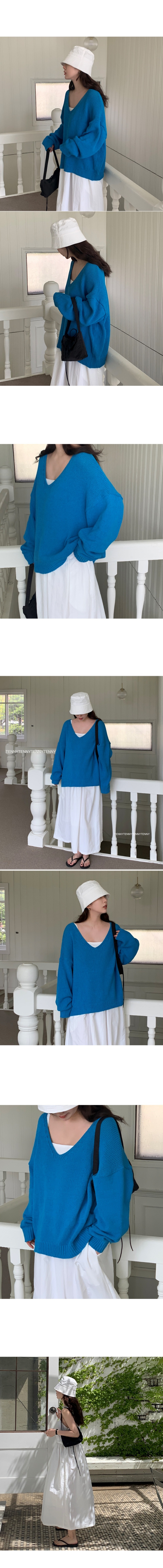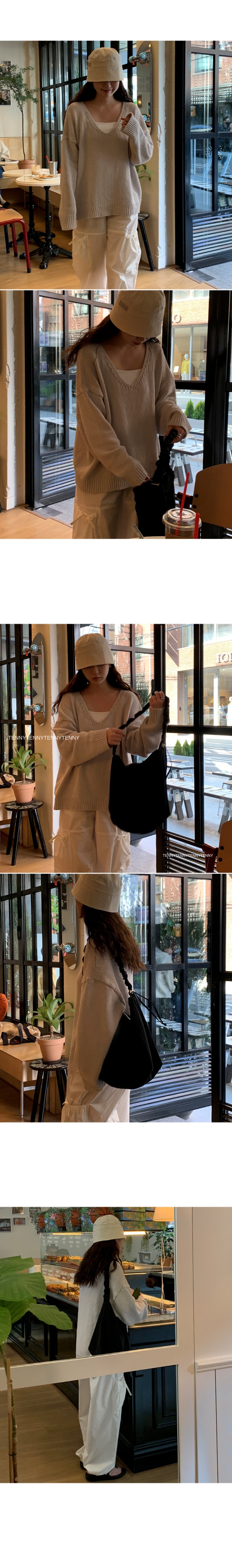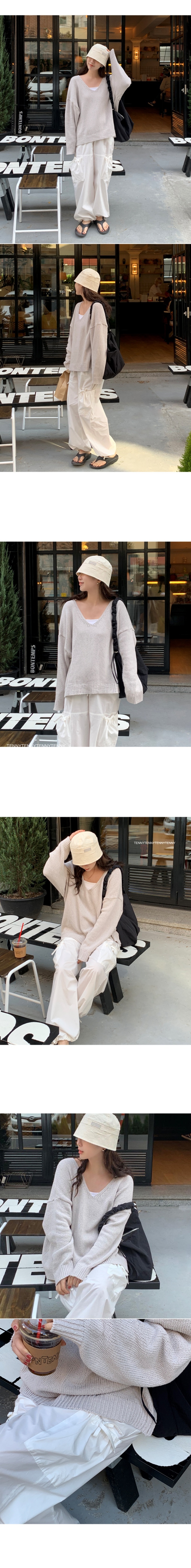這是一款時尚的針織衫,寬鬆的廓形和深 V 領設計:) 我認為您可以
