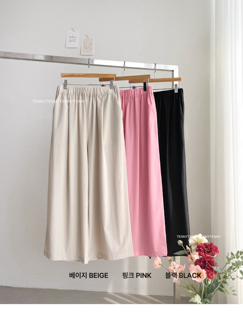 韓貨 東大門代購光滑涼爽不起皺鬆緊八分寬褲