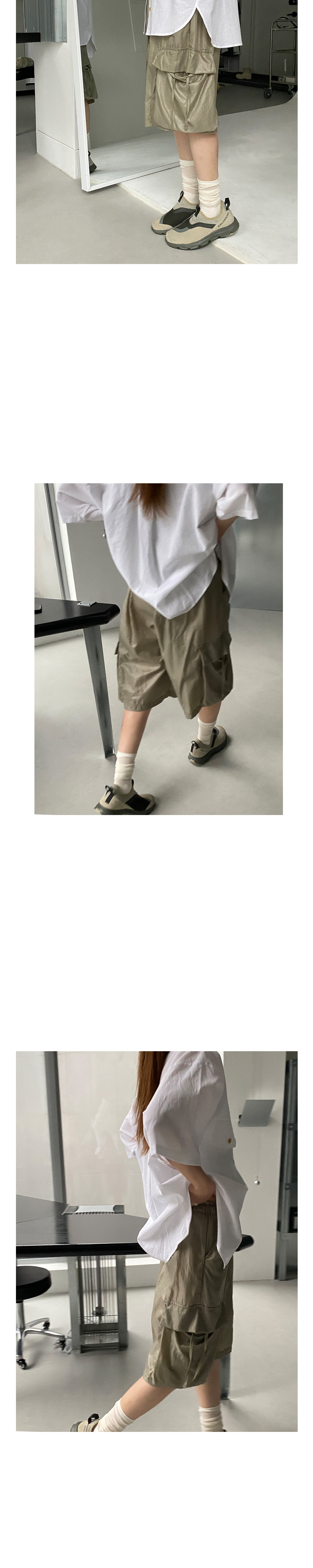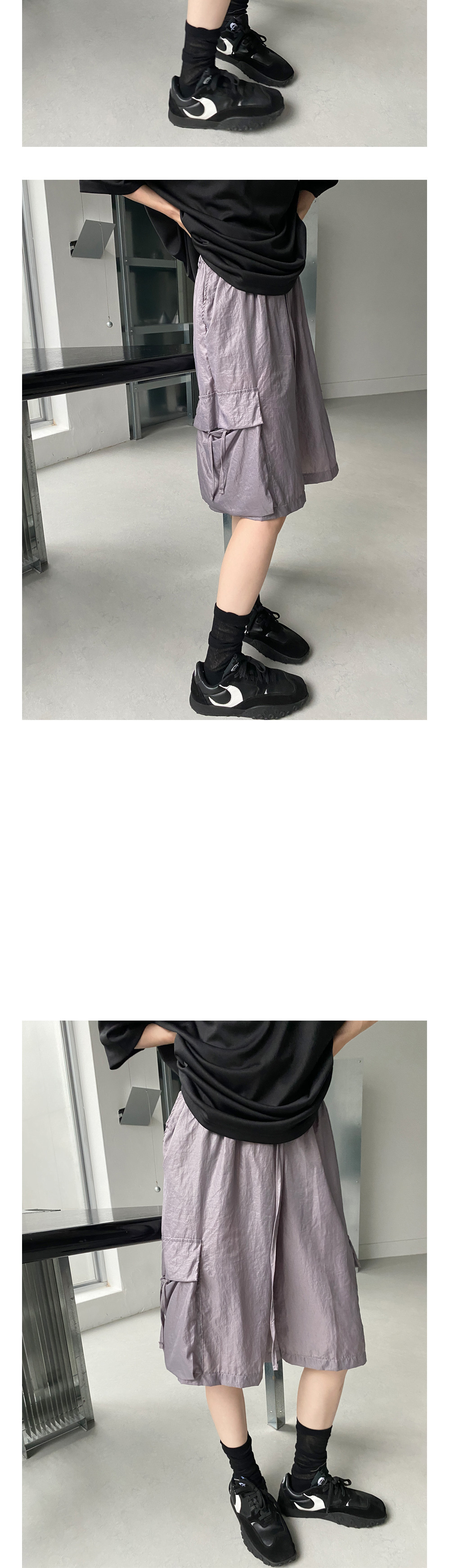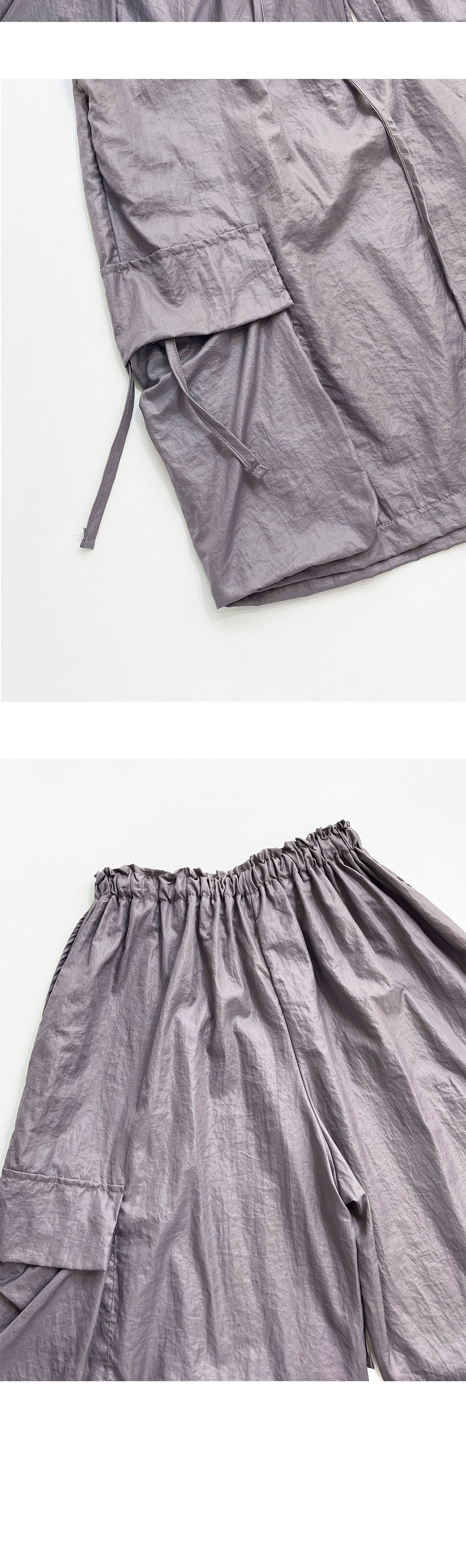 半褲 + 寬版型 + 柔性尼龍材質 + 切片厚度 + 全腰帶 + 氣球細節 + 一些光澤 顏色 卡其色/紫色 織物 尼龍100 尺寸 腰圍 31-51 臀圍 59 大腿 34 腰圍 35 總長 60 / 這是一款一刀切的產品