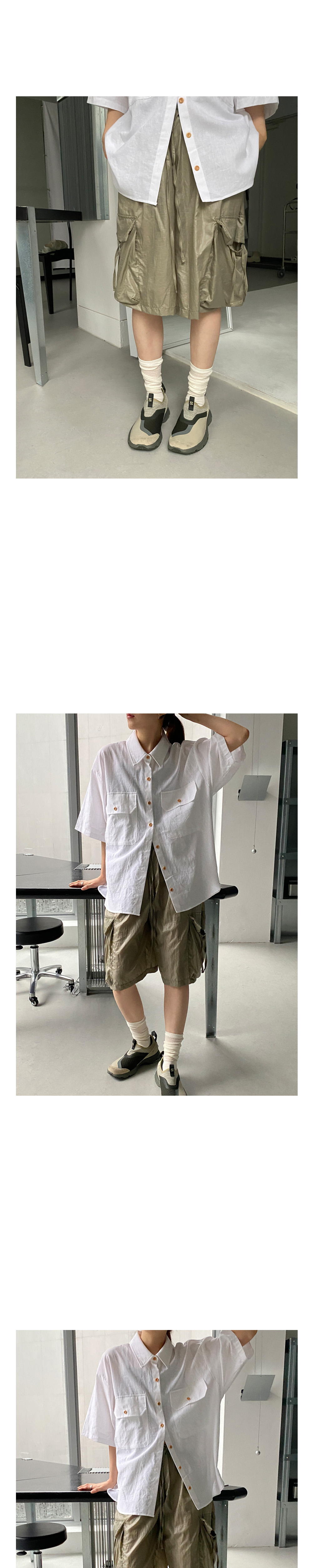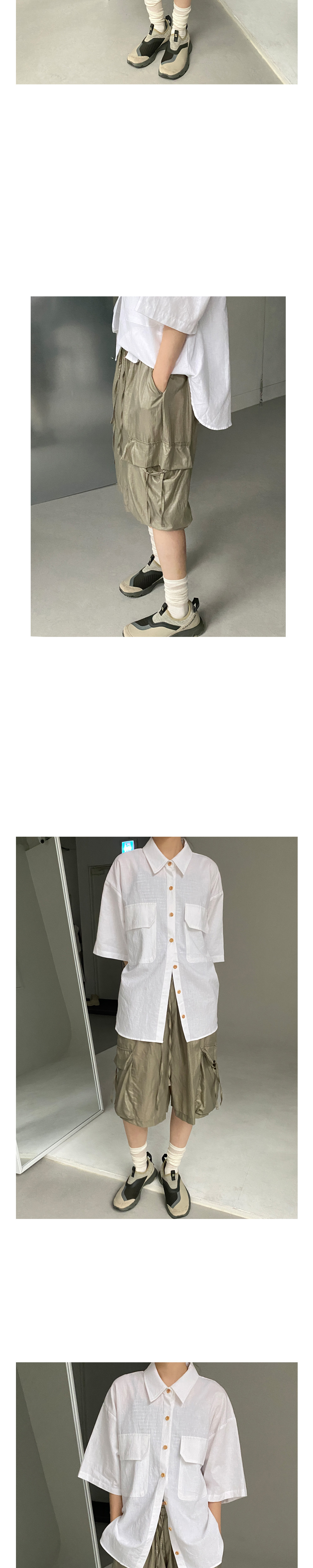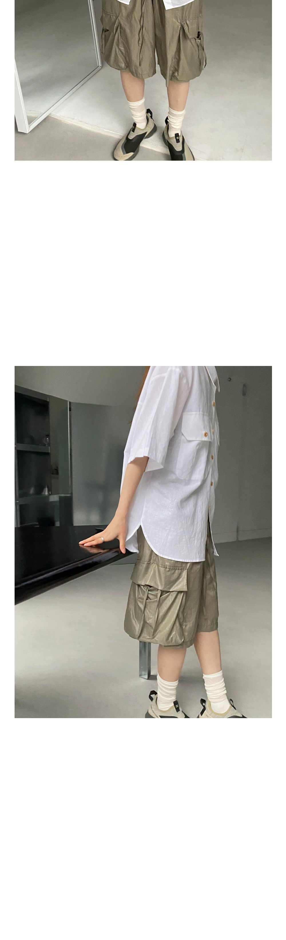 半褲 + 寬版型 + 柔性尼龍材質 + 切片厚度 + 全腰帶 + 氣球細節 + 一些光澤 顏色 卡其色/紫色 織物 尼龍100 尺寸 腰圍 31-51 臀圍 59 大腿 34 腰圍 35 總長 60 / 這是一款一刀切的產品