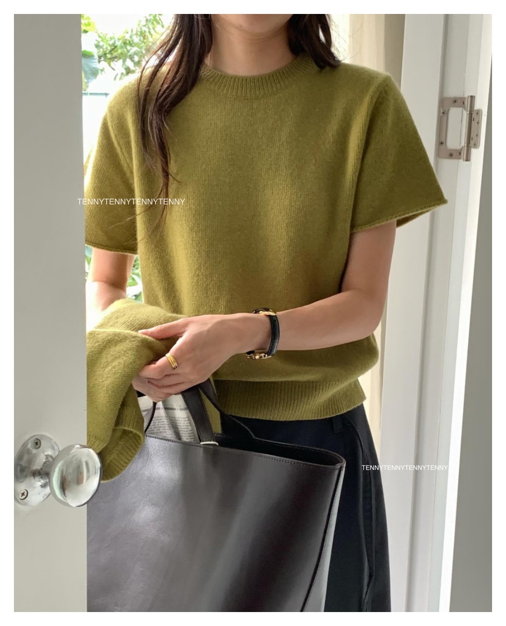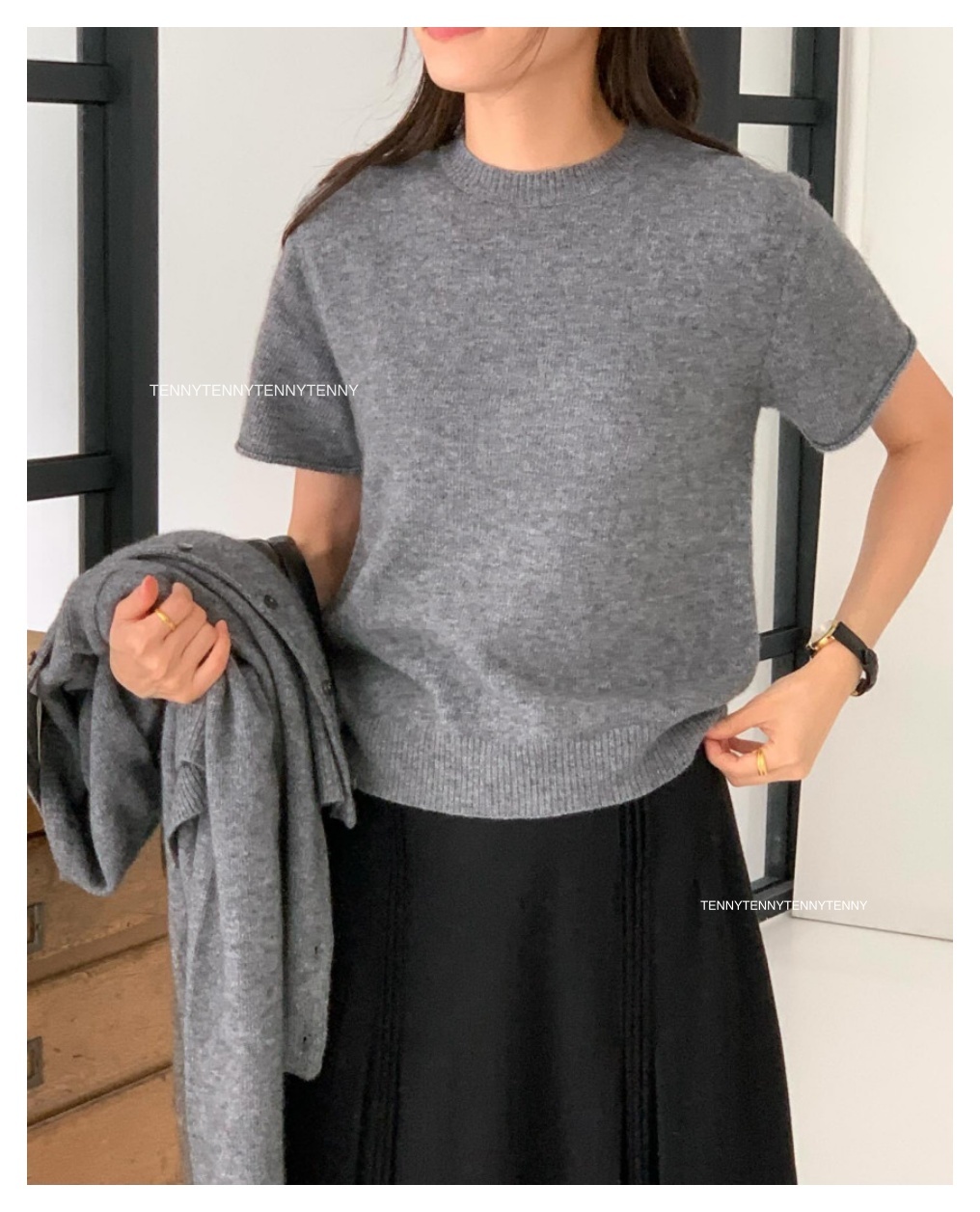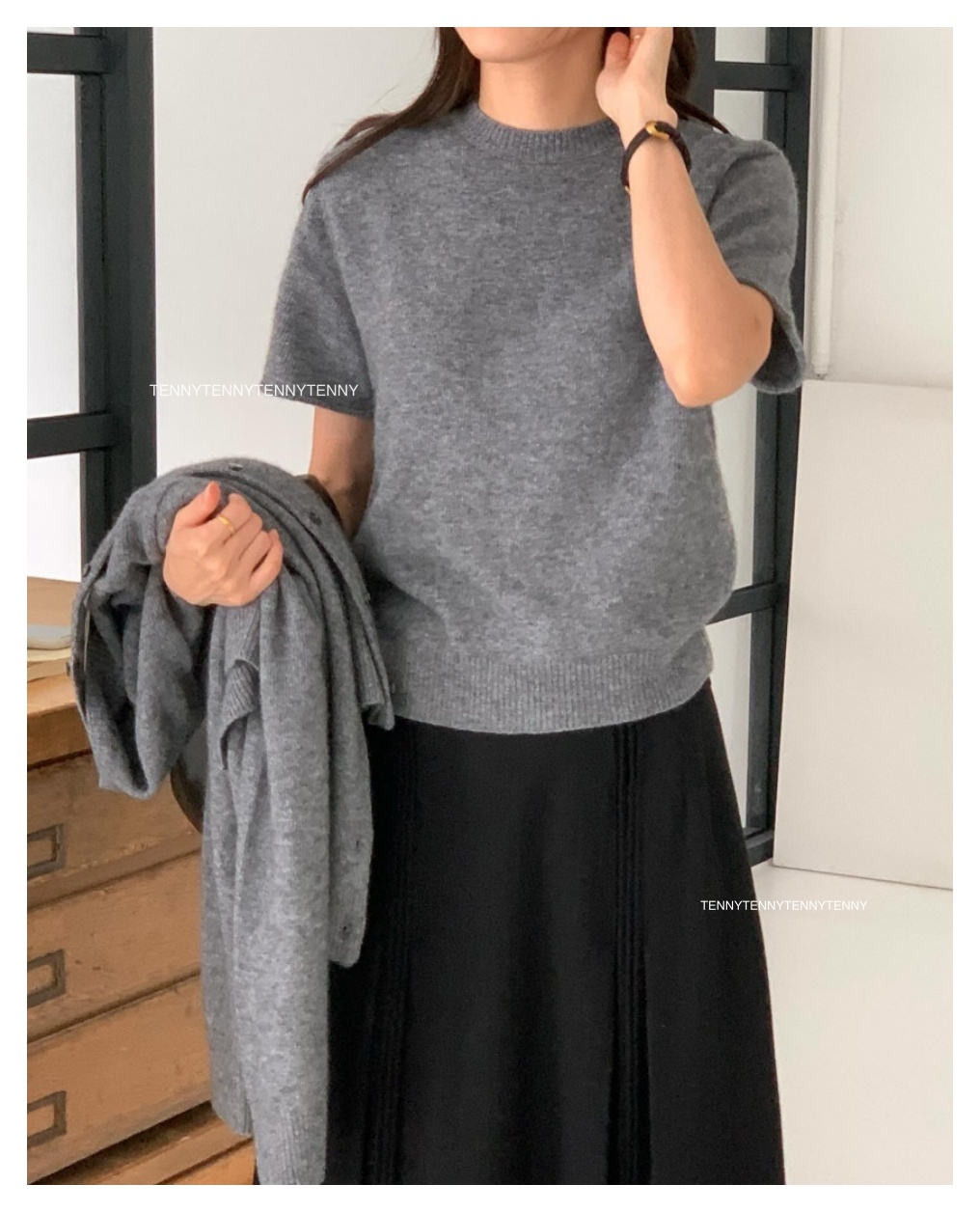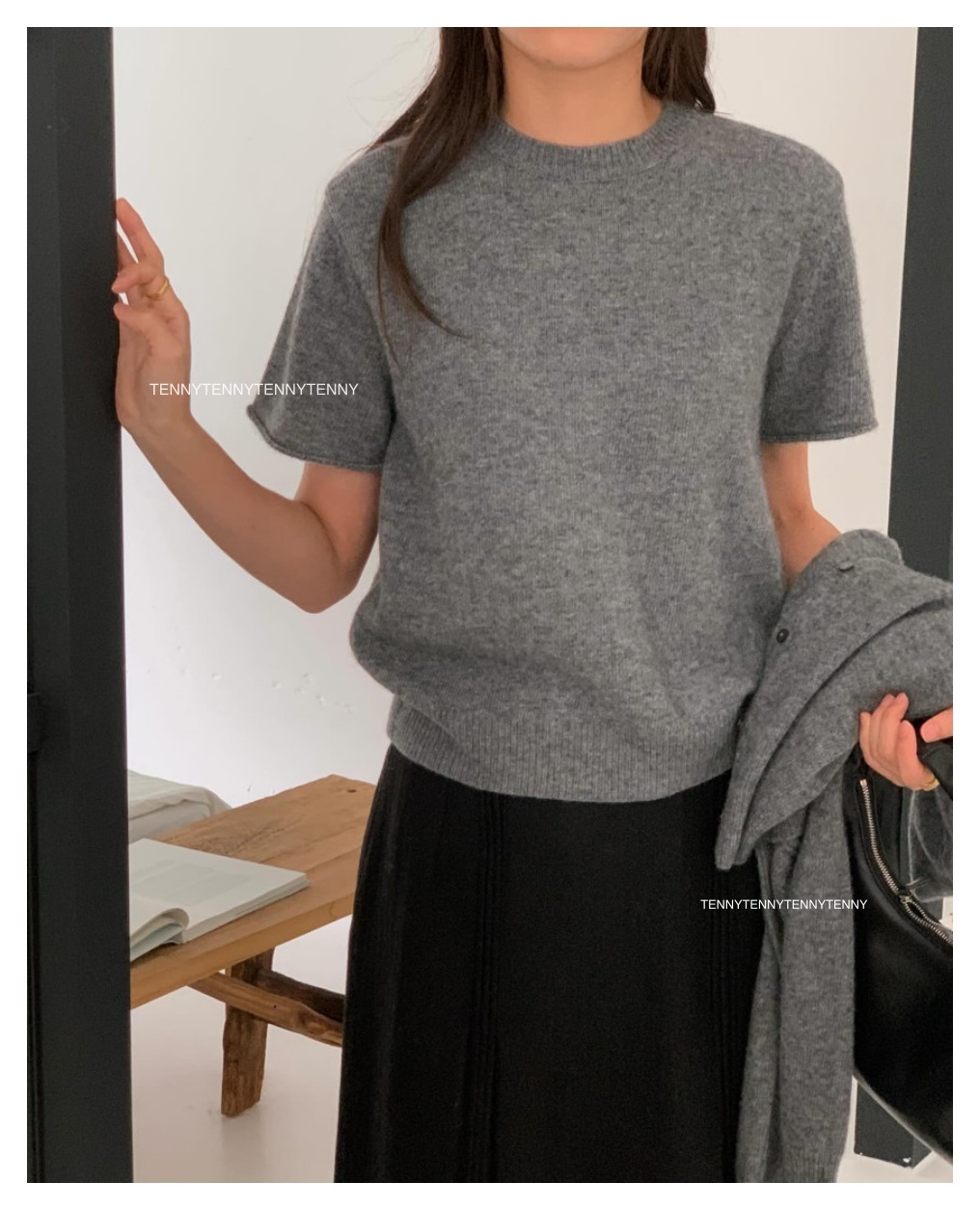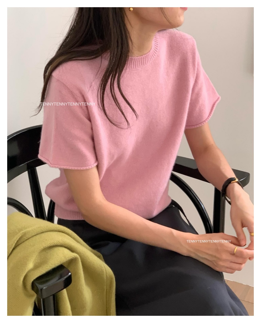韓貨 東大門代購質感美麗諾羊毛針織套頭短袖上衣 親膚