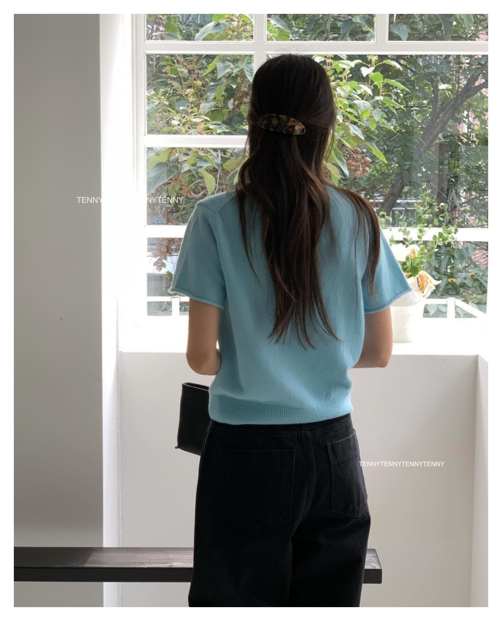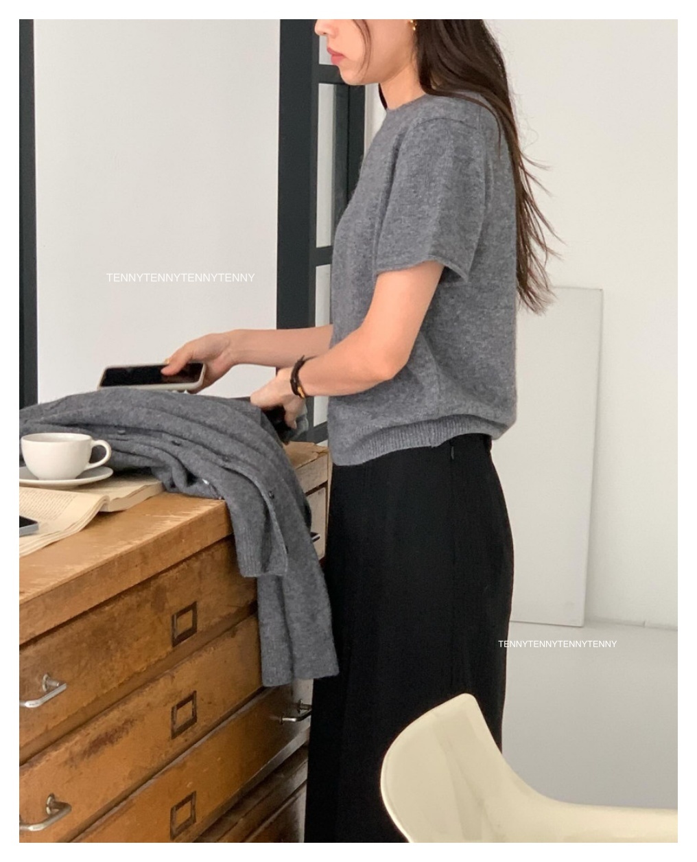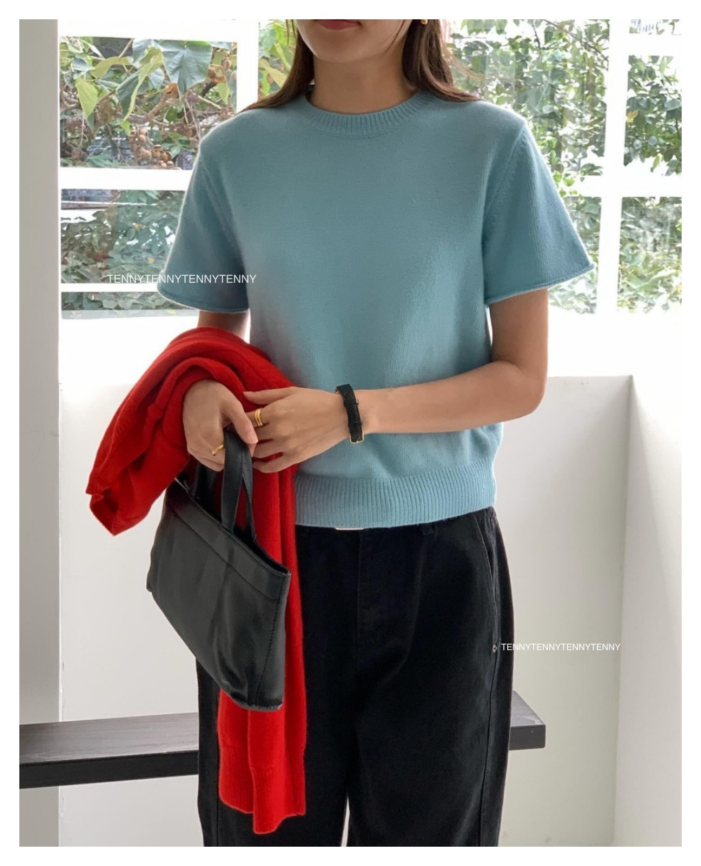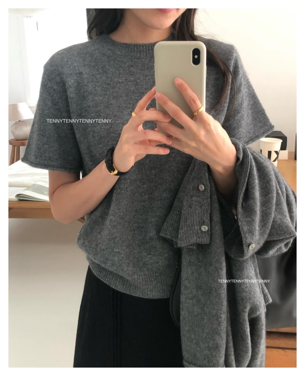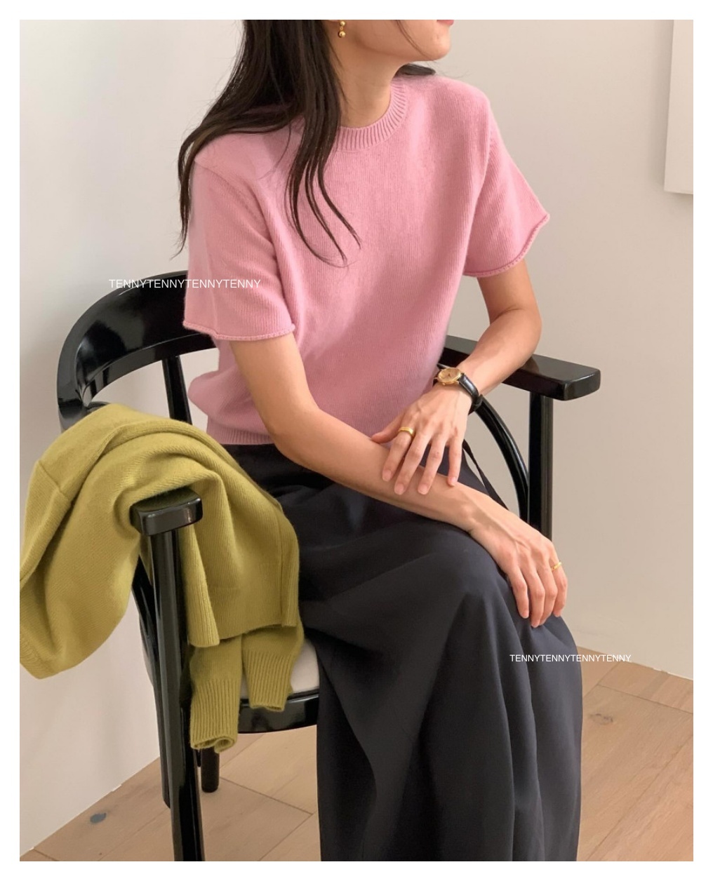 韓貨 東大門代購質感美麗諾羊毛針織套頭短袖上衣 親膚