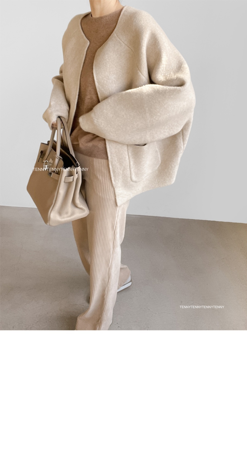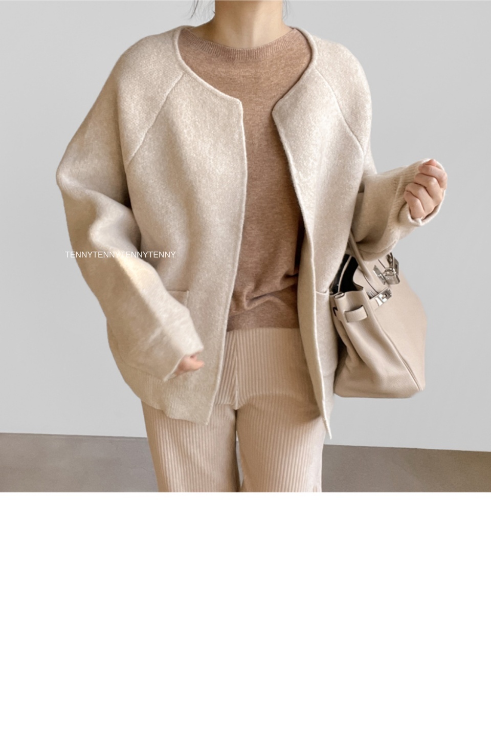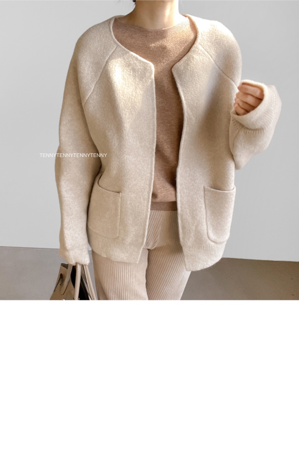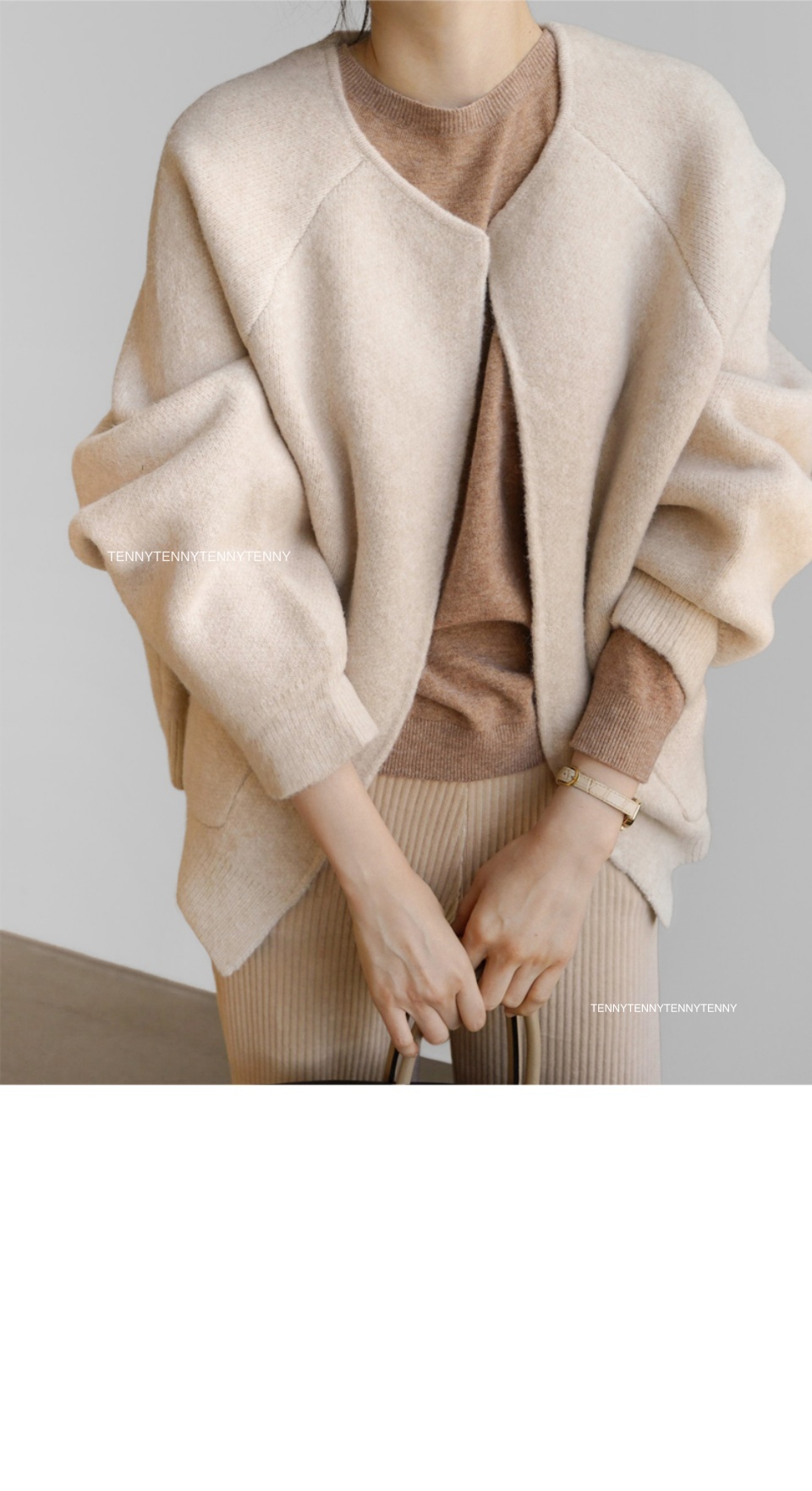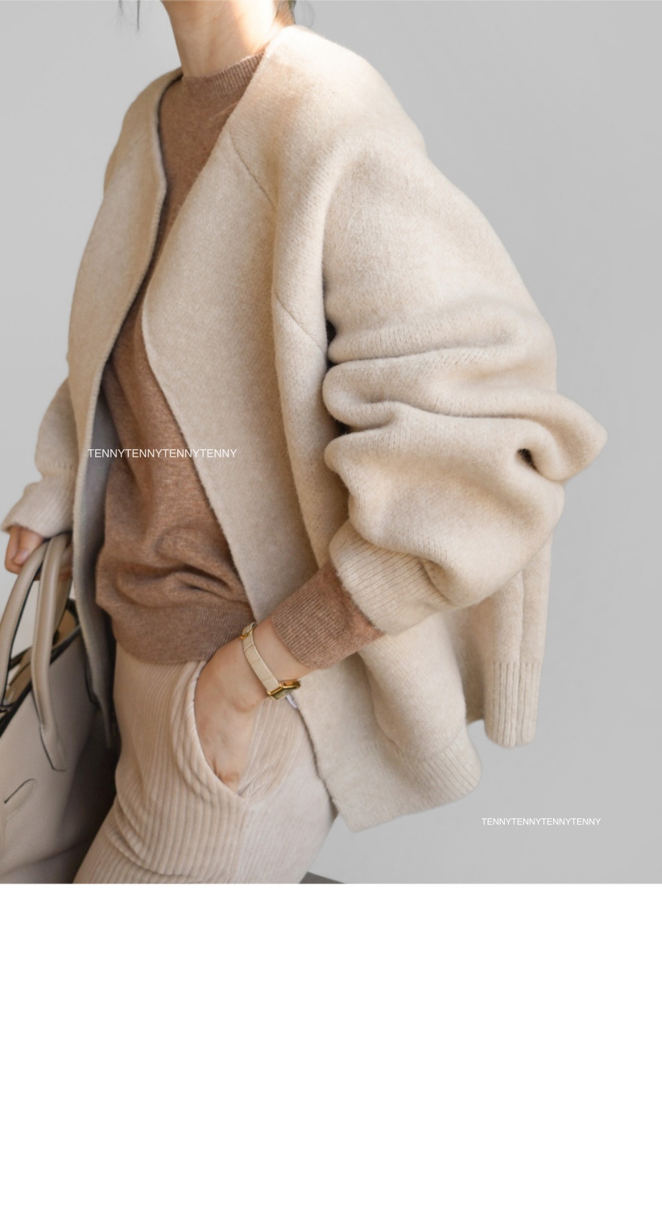 由於拍攝模特兒時的燈光和自然光, 可能與實際服裝顏色有所不同。 底部的細部圖最接近實際顏色。 請注意! 模特兒穿的顏色是米色。 - 這是一款由 50% 羊毛和 50% 聚酯纖維混合製成的針織開襟衫。 它有一種外套般的魅力,與輕微磨損的開襟衫不同。 密度非常好,近看就能看到紋理。 乍一看,它就像一件手工製作的夾克。 它永遠不會感覺沉重或悶熱。 它看起來並不暗淡或臃腫。 沒有僵硬感,所以你會感到平靜和焦躁。 乍一看,好像有很多紗線吧? 全身都被羊毛包裹著,非常舒適。 它不會給您的肩膀帶來任何重量,而且與它的尺寸相比非常輕。 這是一種開放式的風格,沒有封閉性。 它是無領口、無肩線的落肩款。 帶著一點優雅和溫柔。 魚魟的設計讓圓潤、體積感十足的輪廓顯得冷漠。 穿起來也不會顯得臃腫。 寬度和袖子非常寬敞,沒有袖孔或任何東西。 寬鬆的針織衫、運動衫、內衣,一切皆有可能。 它是半長的長度,可以覆蓋一半的臀部。 它隱藏了從頸部以下到臀部的所有贅肉。 尺寸寬鬆,版型介於寬鬆和四四方方之間。 感覺就像一個小小的身體被困在外套裡面一樣。 由於肩膀不突出而顯得特別矮的人 特別是對於那些肩膀較窄的人來說,它不適合。 我照亮那些矮小的人。 如果你跟我一樣有寬闊的肩膀 對於那些前臂兩側有一些難看的脂肪的人... 我真的希望你不要錯過這個 尺寸很好smL身型都適合 基本顏色是米色、灰色和黑色。 我穿的是米色,但這三個顏色都很好。 我很難提供任何顏色建議,請根據您的喜好選擇。