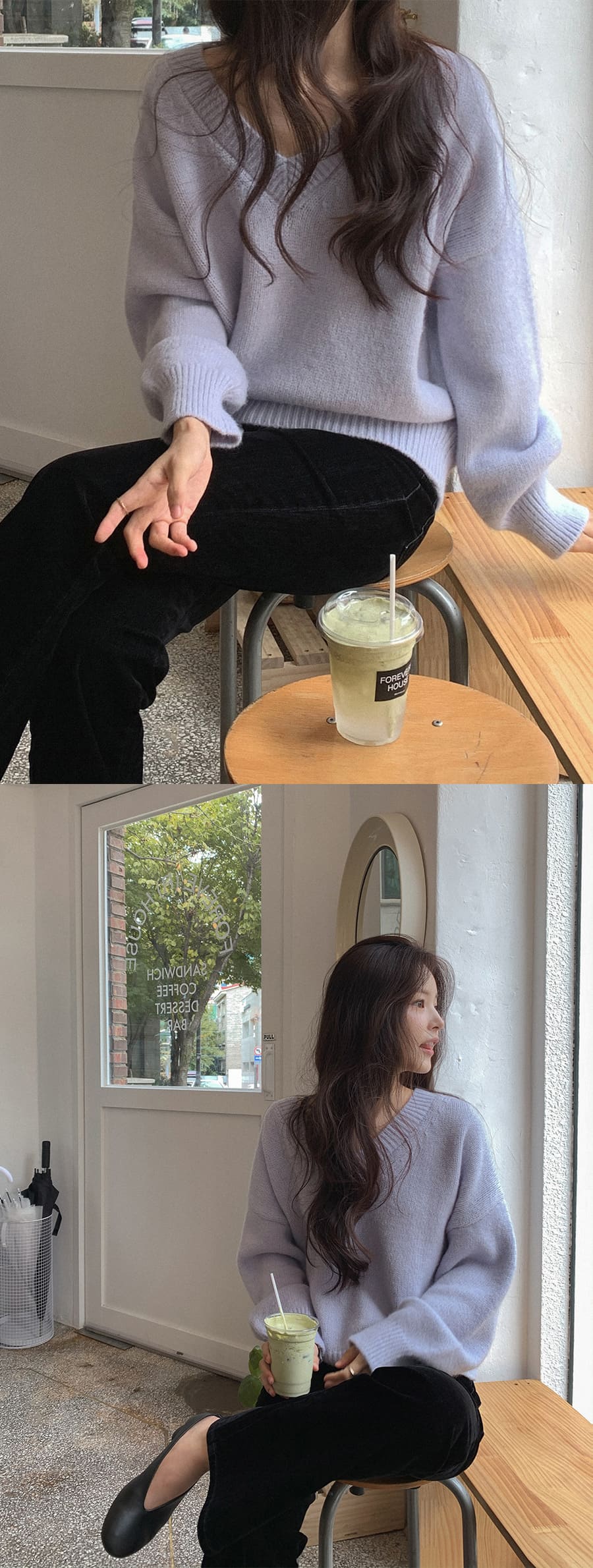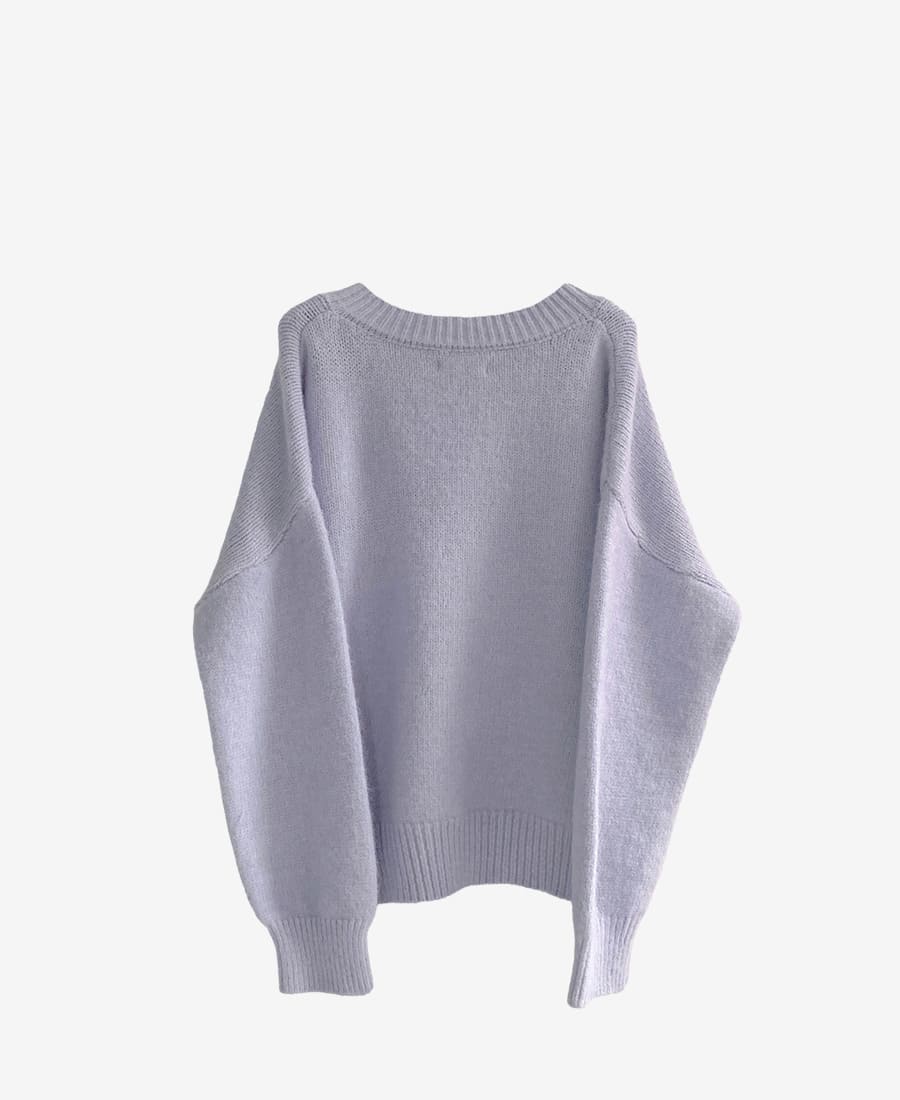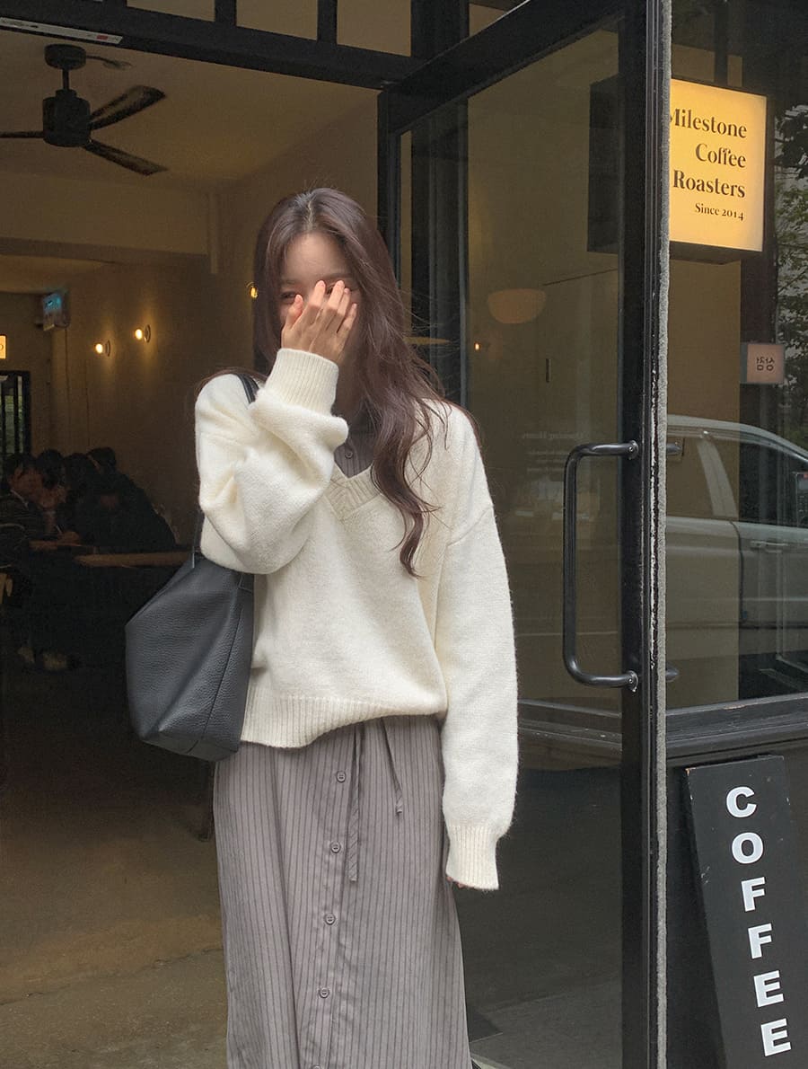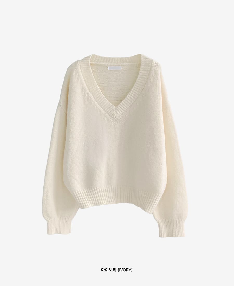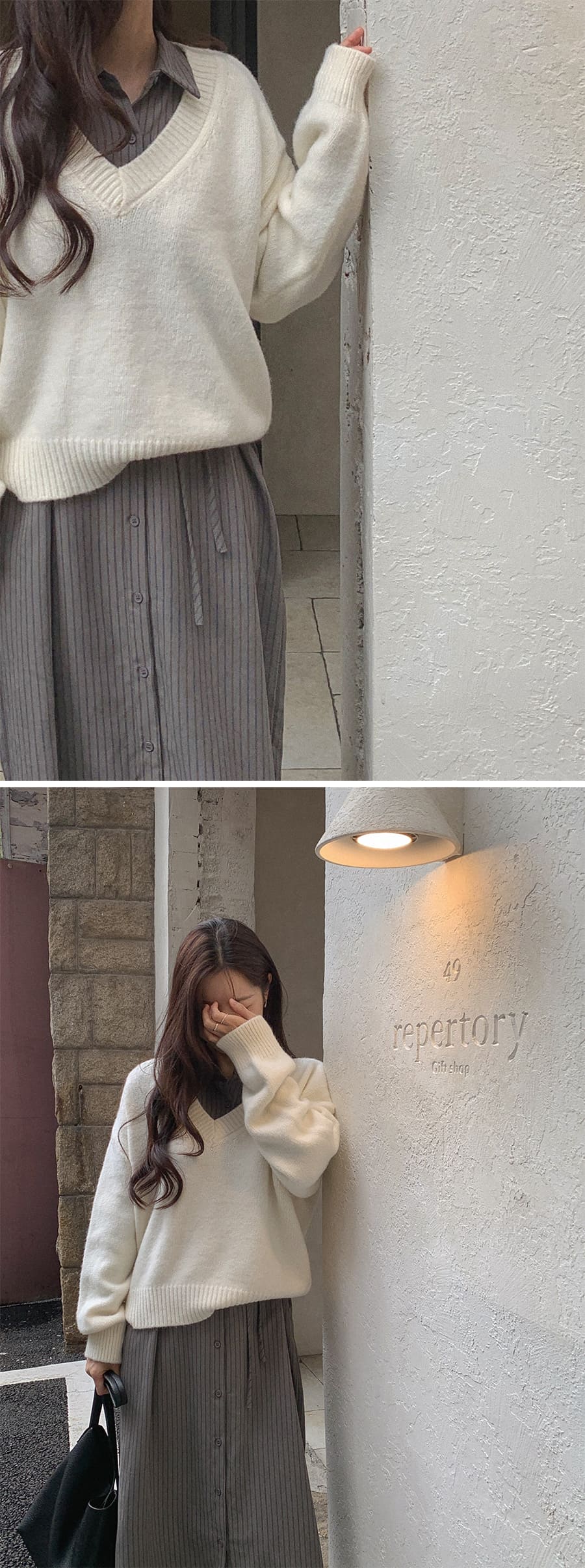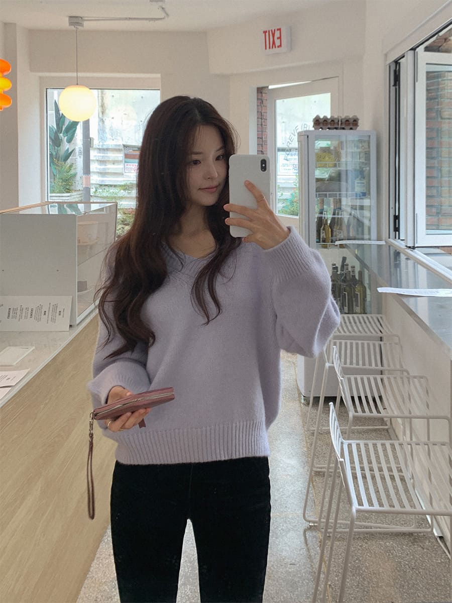 寬V領設計,展現柔美氛圍的寬鬆針織上衣。