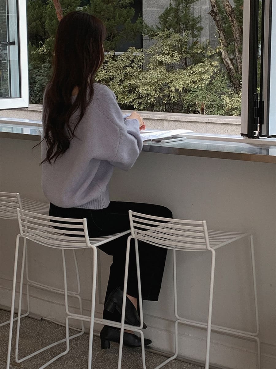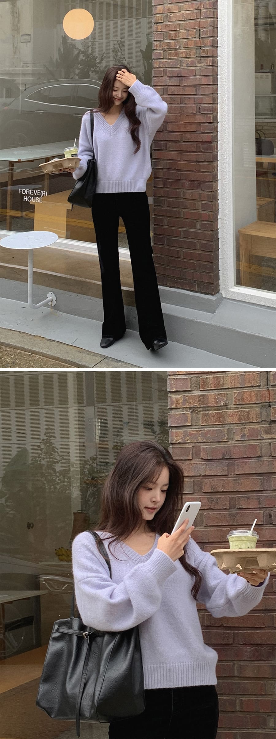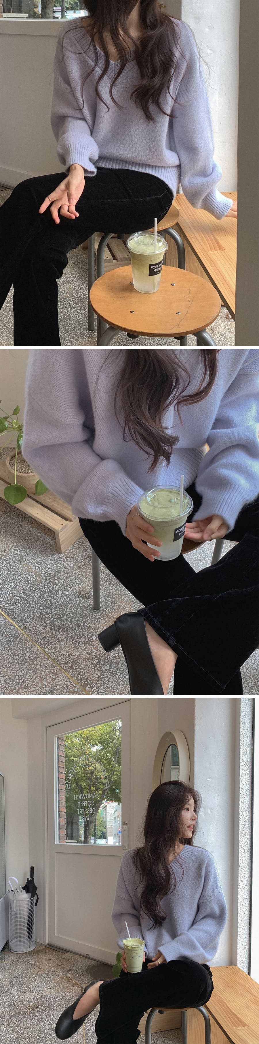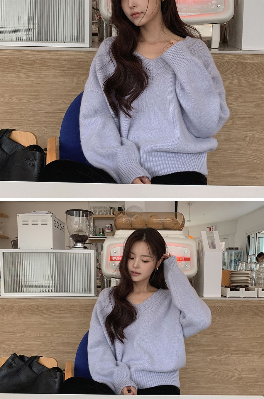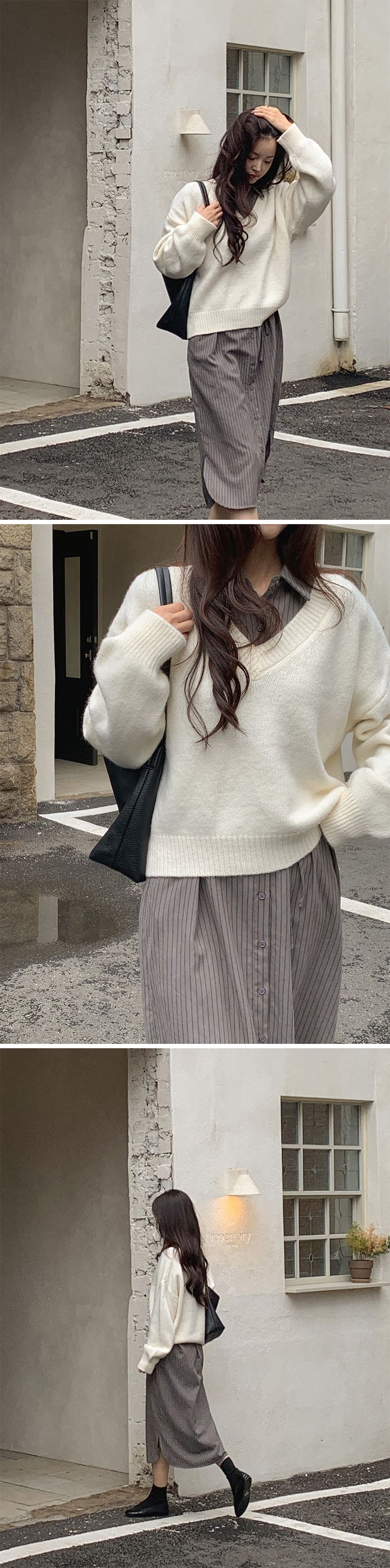 寬V領設計,展現柔美氛圍的寬鬆針織上衣。