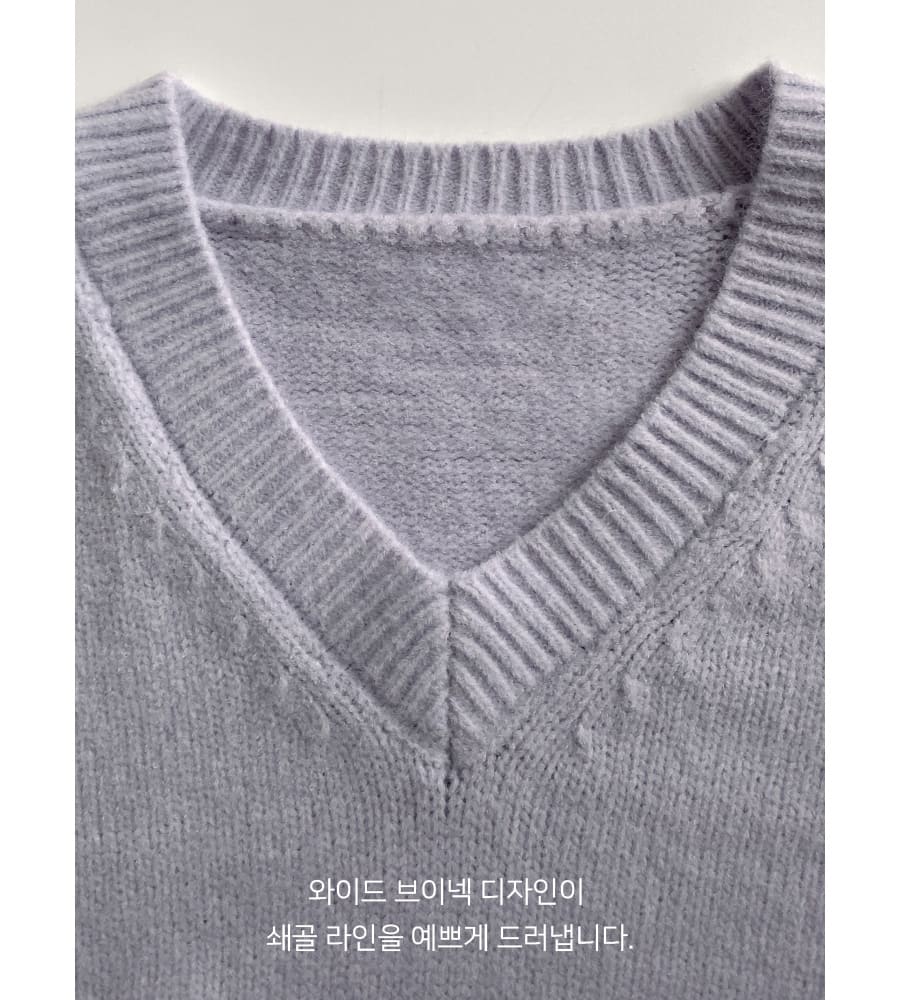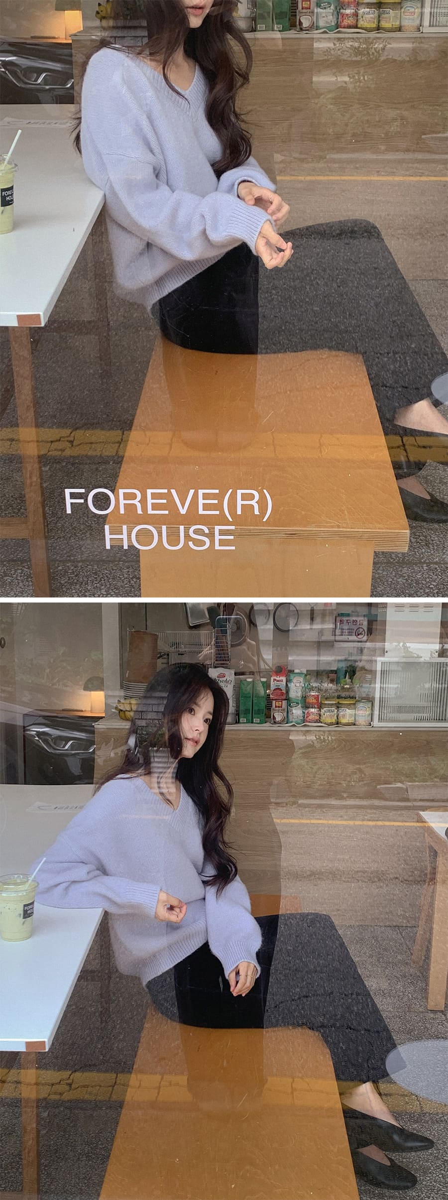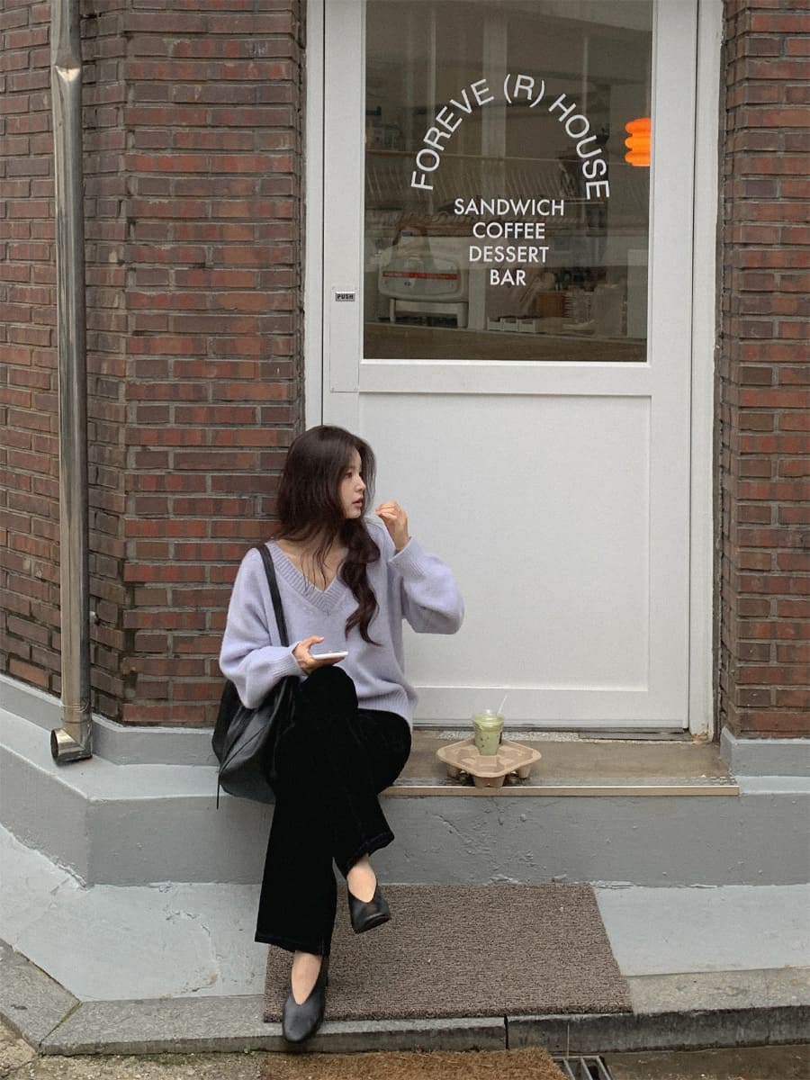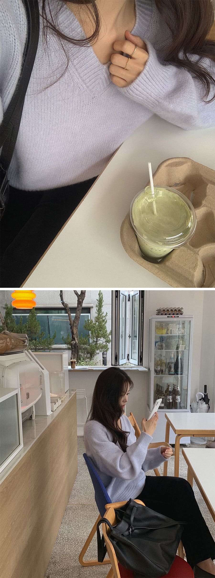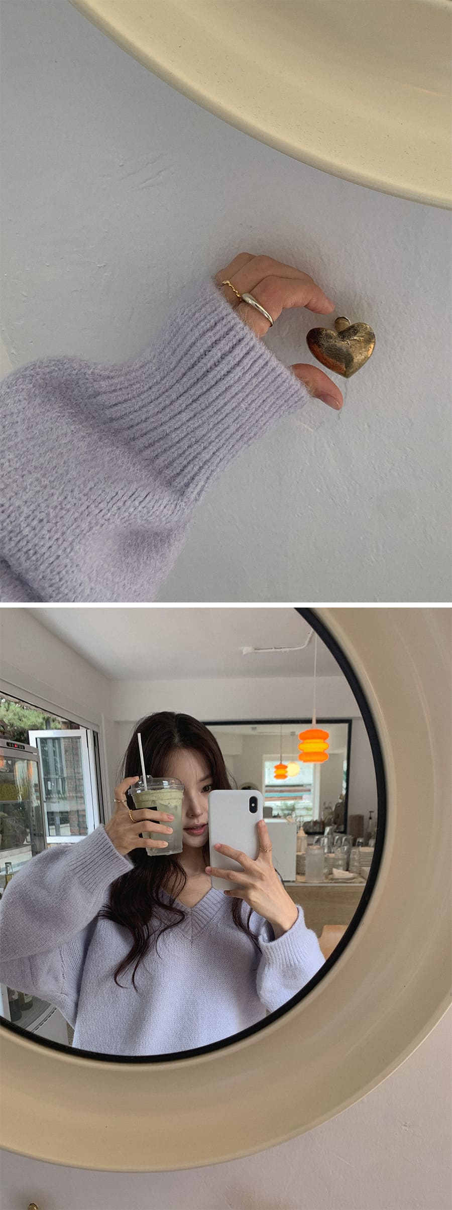 寬V領設計,展現柔美氛圍的寬鬆針織上衣。