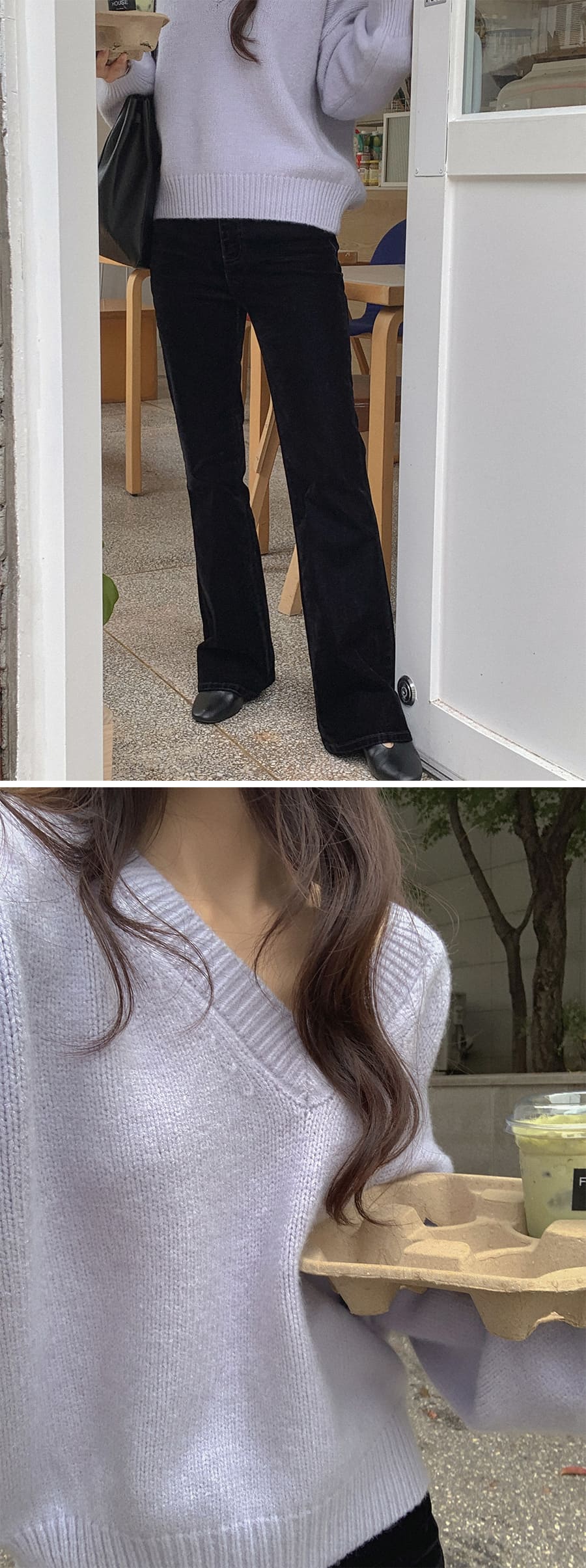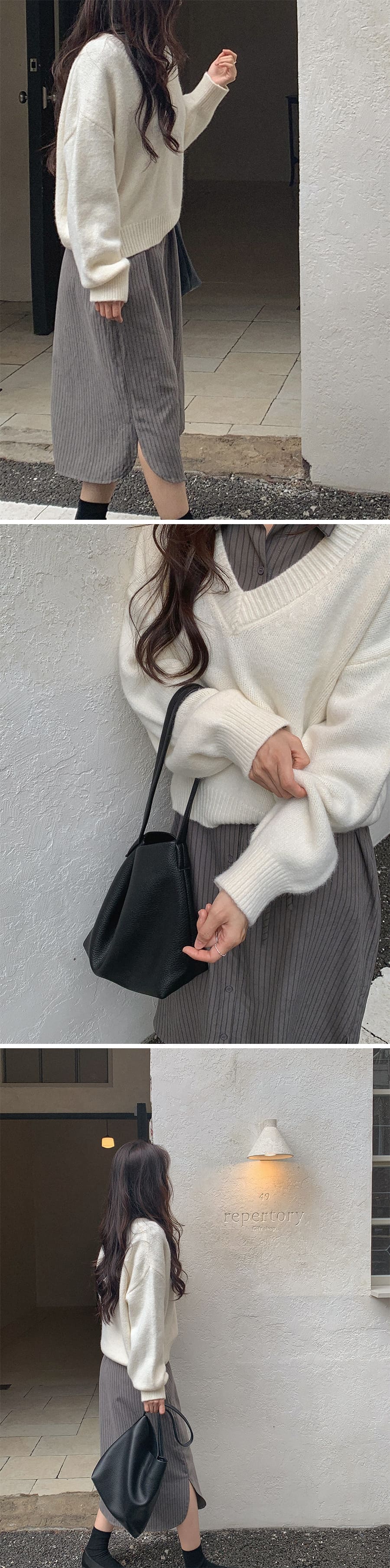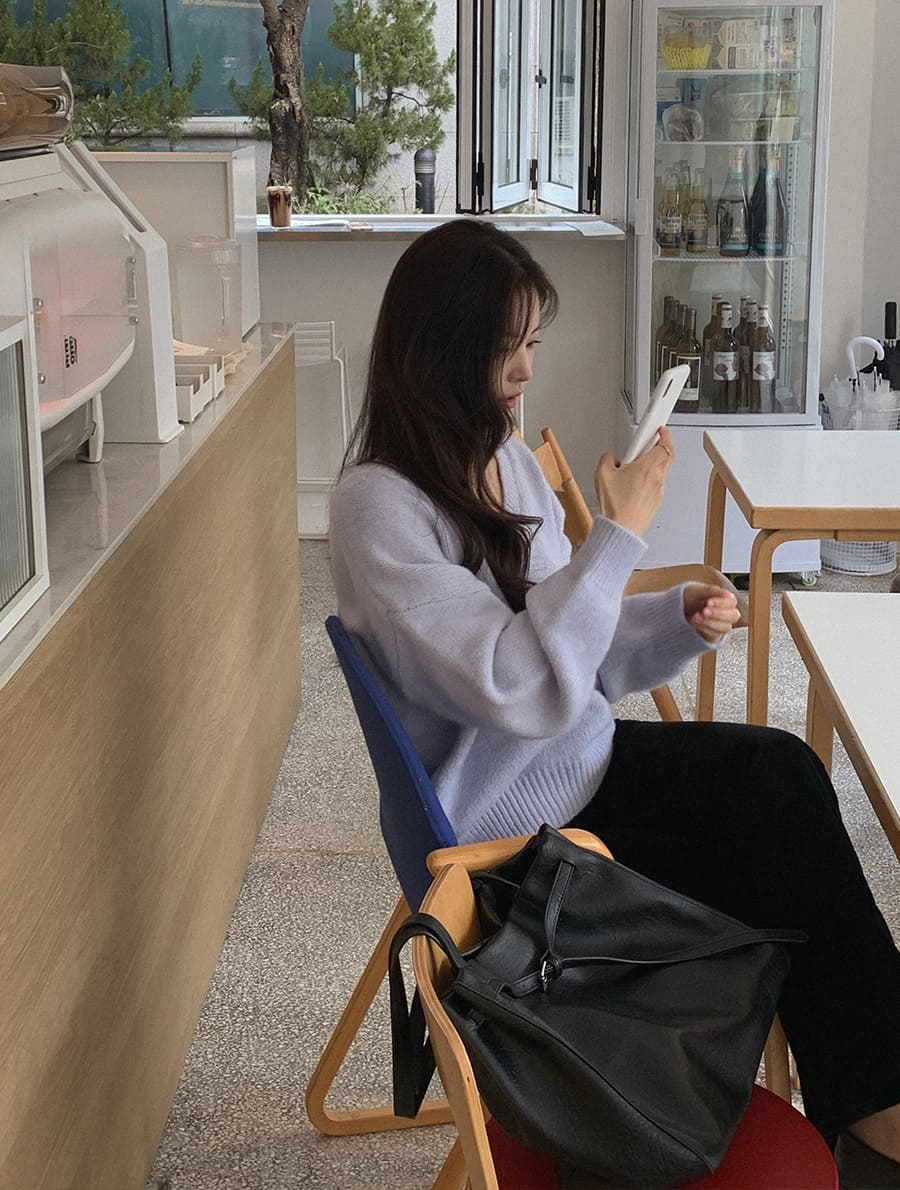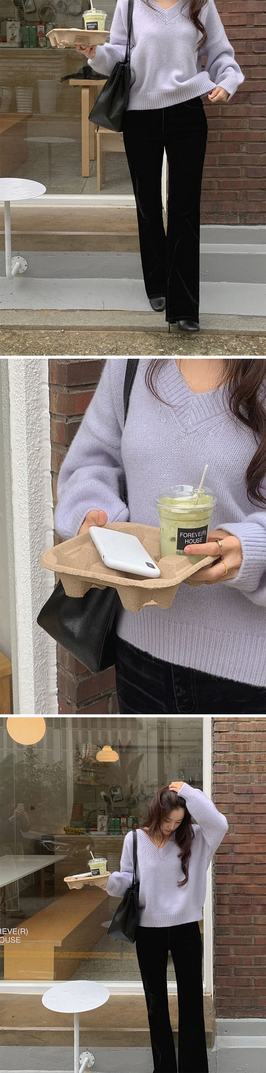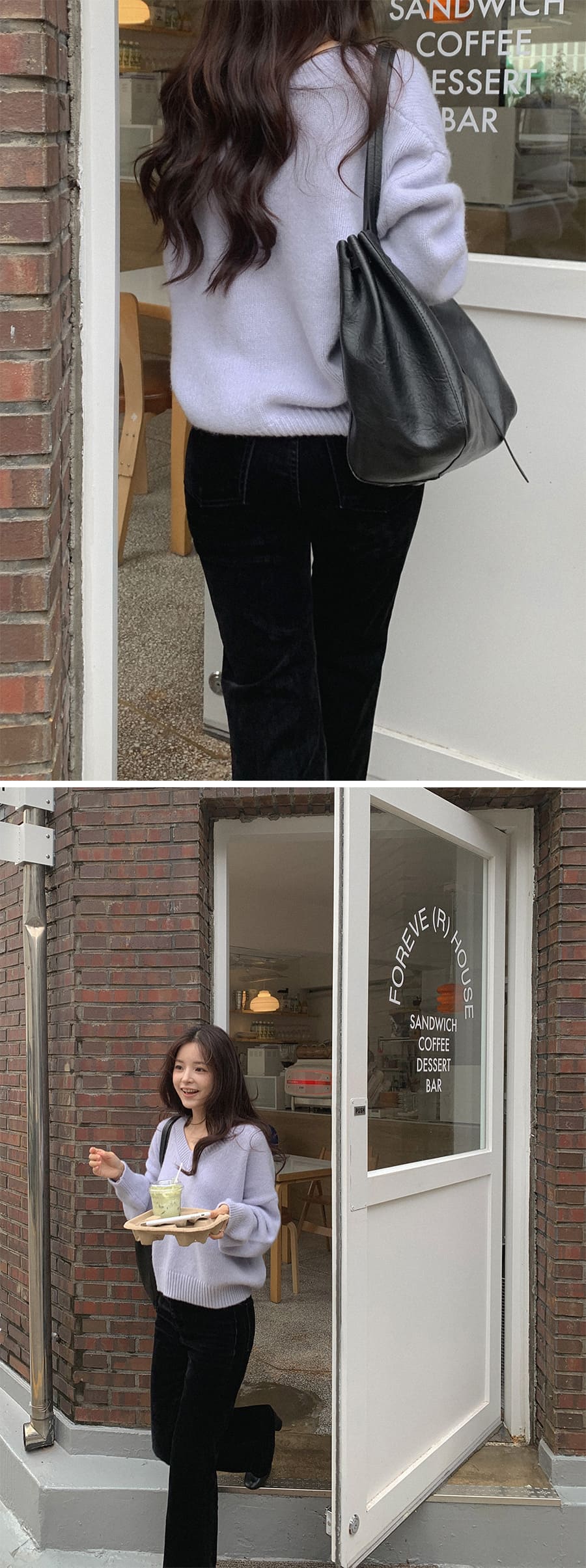 寬V領設計,展現柔美氛圍的寬鬆針織上衣。