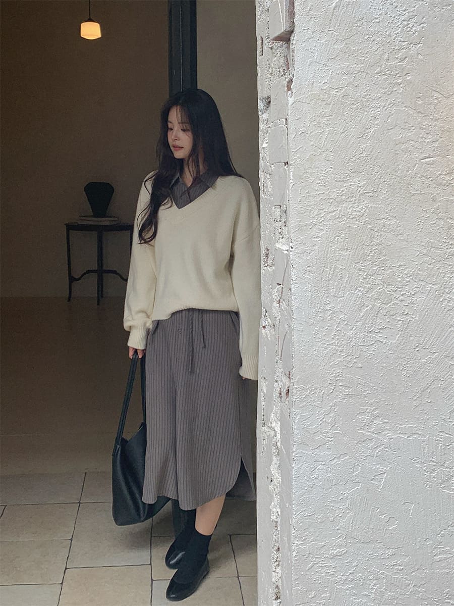 以寬版V領剪裁打造出柔和又隨性的氣質氛圍🕊️